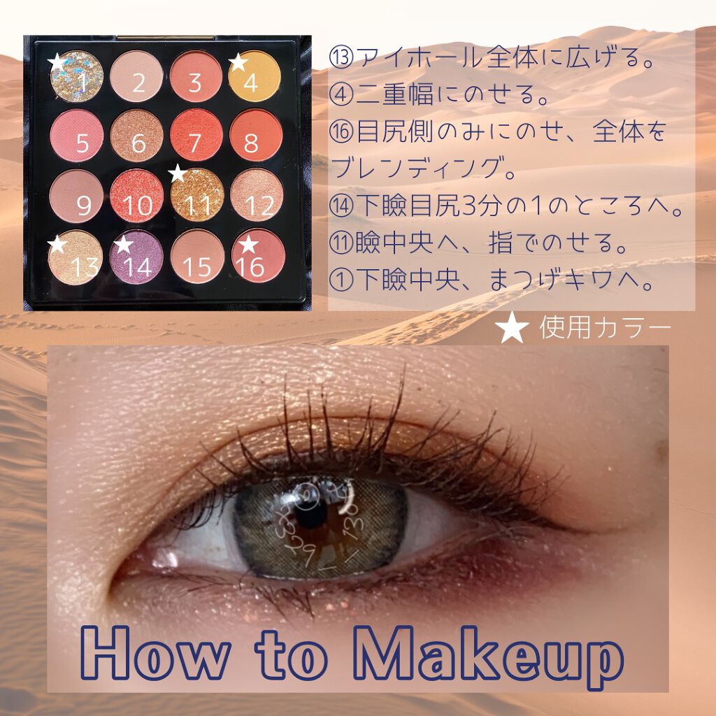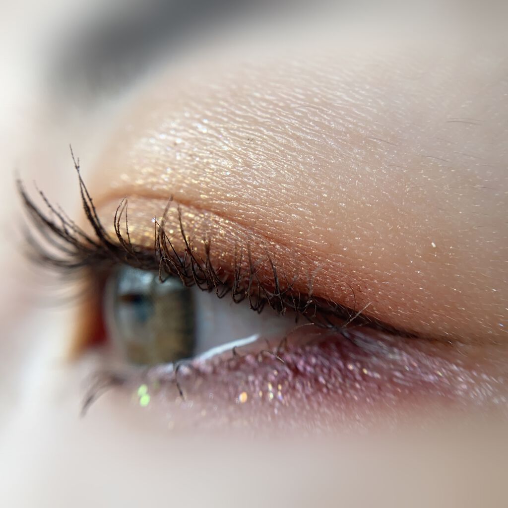 プロアイパレットより粉質が柔らかくしっとり感もあり伸びもよくブレンディングしやすかったです◎ 大粒ラメは密着度高めるために、クリーム加工のようにされてる為粉落ち、ラメ飛びしないでしっかりと瞼に密着✨ こちらのカラー01は、全体に黄味を含んだヌーディカラーでイエベ向け💛🧡 ラメを広範囲に使わなければ、オフィスでも使いやすい万能カラー❣️ しかもどのカラーも捨て色なし◎ 持ち運びも便利なサイズ感❣️ でも下段のカラーは割かしブルベの私でも使えるなと感じた😊