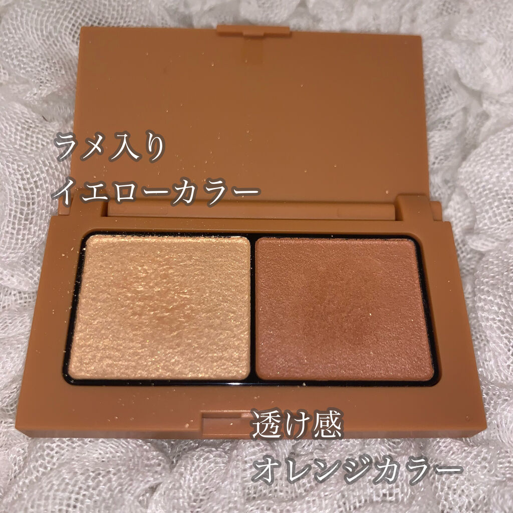 ツヤとマットの2つの質感で、目元をナチュラルに大きく見せられるアイシャドウです。 左は透明感のあるゴールドラメ、右はマットで肌なじみの良いコーラルオレンジになっています🍊 じんわりと温かみのある目元に仕上がるので、これからの季節にもオススメです✨