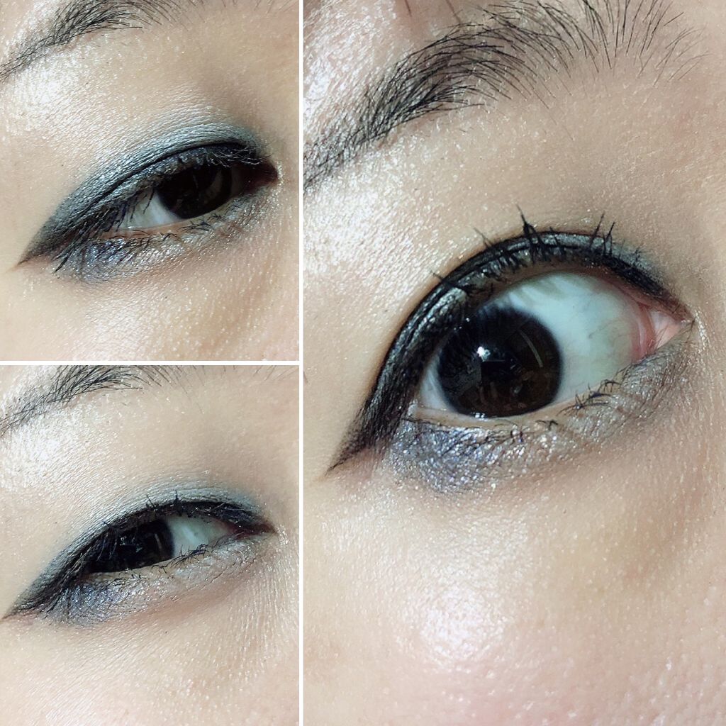 青み紫リキッドシャドウ。 青系統パレット。 苦手色は堂々と瞼中央配置しました。 涙袋はリンメル右上、今回メインの色で影付けて、左上でハイライトとする。 紫を強めるのに一役。 ダークチェスナット 青み系リップ一本有れば汎用性有るわぁ。