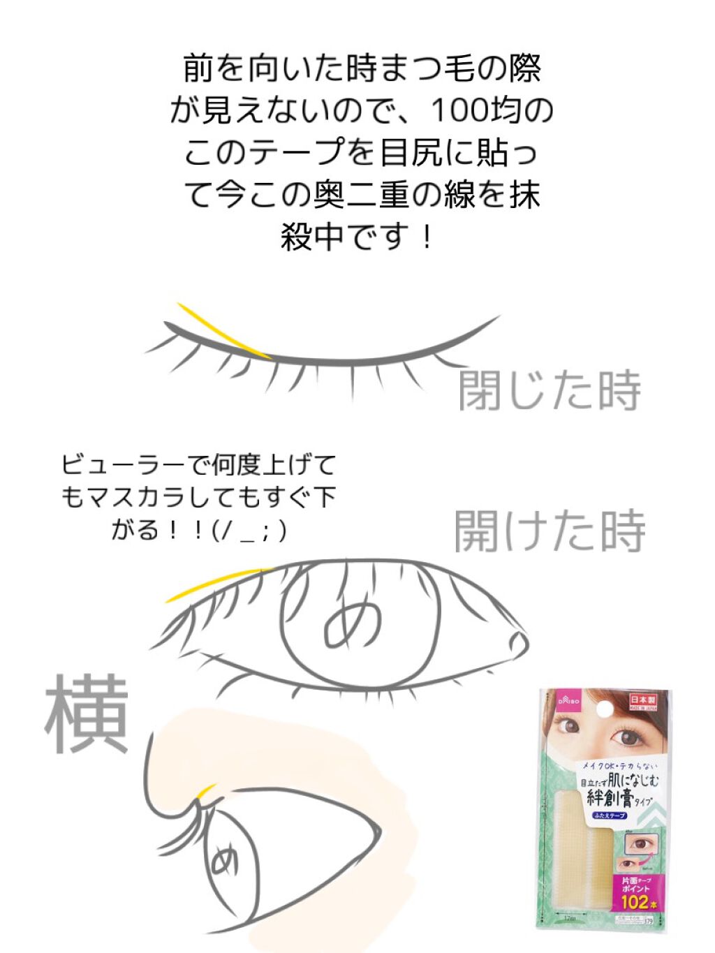 | メイクアップグッズランキング第124位 | 引っ張って二重瞼につけて端をハサミで切る!しっかりまぶたにくっつくし、その上から化粧しても粘着落ちたりしなかったから良き!! | 詳細を見る | |