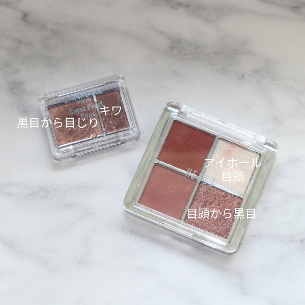しっとりしているので粉飛びを気にせずメイクできます! 右下のピンクを使いたい気分だったので 上まぶたの目じりにポイントで使いました💓 パッと見は使いにくそうな色ですが ブラシに少しずつ取っていけば自然な仕上がりになります✨