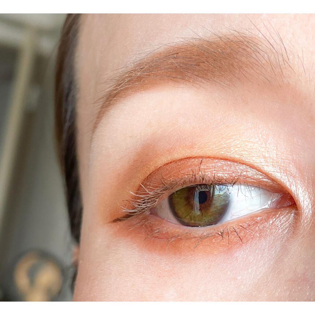 初MiMC‼︎ コスキチで眺めたりチョイッと触ったりしていたこれ。 実際目元に塗るとギャワイー😮💨✨🧡🤎 粉質しっとりで色のりがいい! 左側のイエローゴールドが思っていたより 瞼の上でしっかり発色して目元が明るくなる☺️ 暖色ゴールド&ブラウン系で 目元がくどくキツくなりがちなブルベですが ギラギラしていないからか、 テラコッタブラウンの柔らかい色あいなのか スッとした意志のある目になって好きです。 目元に優しい成分のみでできている 潤うアイシャドウ。