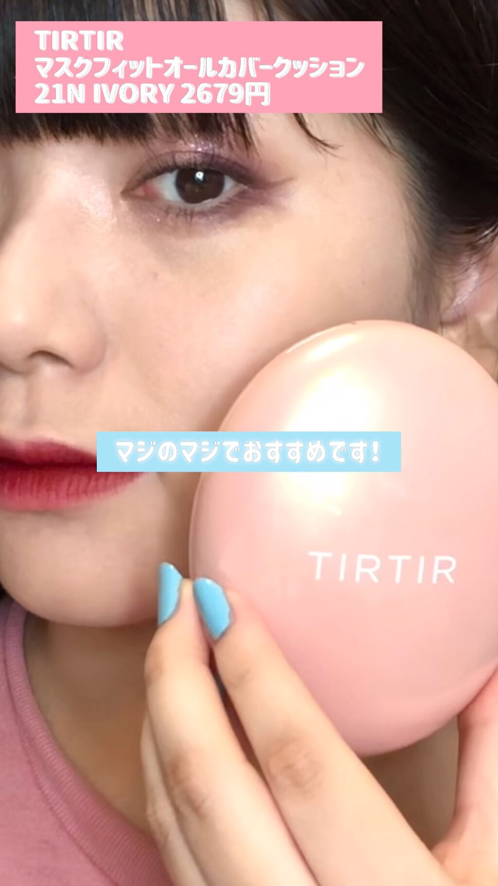 脂性肌の方におすすめ。 長時間メイクキープ。高いカバー力とさらっとした仕上がりが欲しい方へ! TIRTIRのクッションの中ではこのピンクのタイプはマットみたいですが少しツヤ感もあるように思いました✨ 日焼け止めとこのクッションのみでしたが崩れもほとんどなかった👍✨