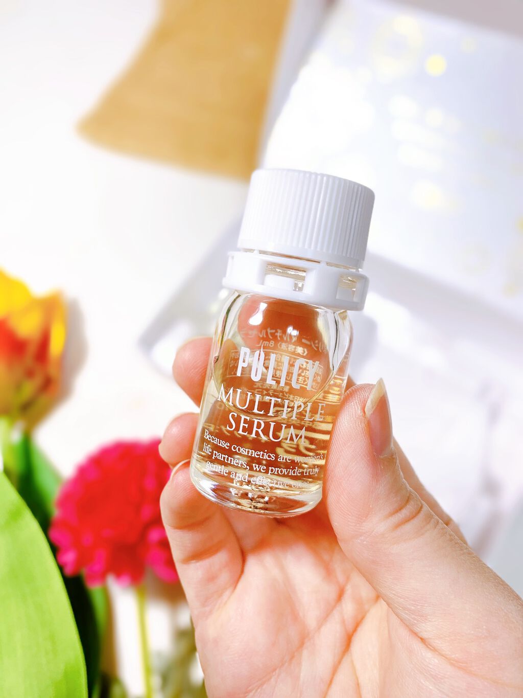 ポリシーマルチプルセラムプラセンタ・サイタイエキスと2つの原液+アルブチン・2種類のヒアルロン酸・甘草・ローマカミツレ・エラスチンの5つの原液を贅沢配合した美容液朝晩洗顔後タオルドライした後すぐのまっさらな肌に塗布します最初は特にたっ...