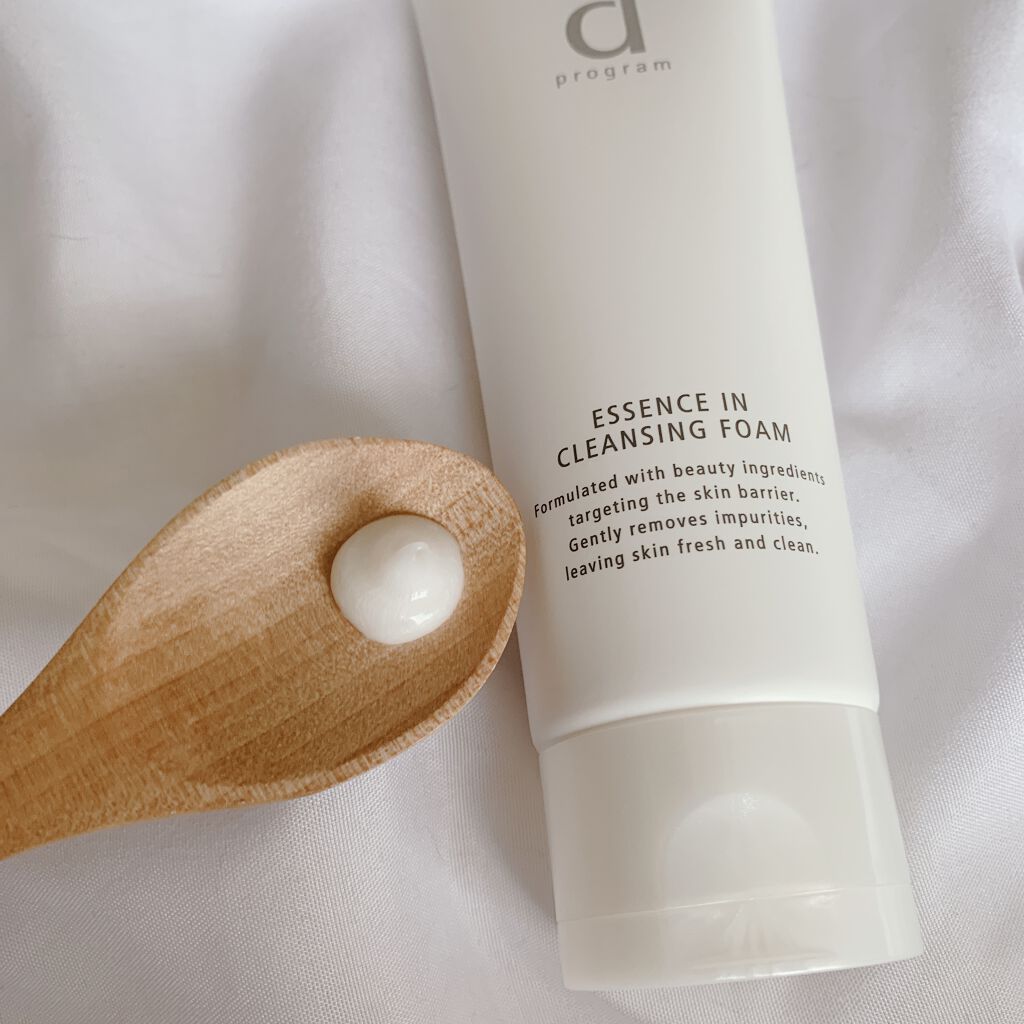 肌荒れの原因まで落とす! d program エッセンスイン クレンジングフォーム 美容成分配合のクリーミーなクッション泡が肌をやさしく包みこみ、汚れや肌荒れの原因までしっかりオフ。 摩擦感なく洗えるし、洗い上がりがつっぱらないのも嬉しい。