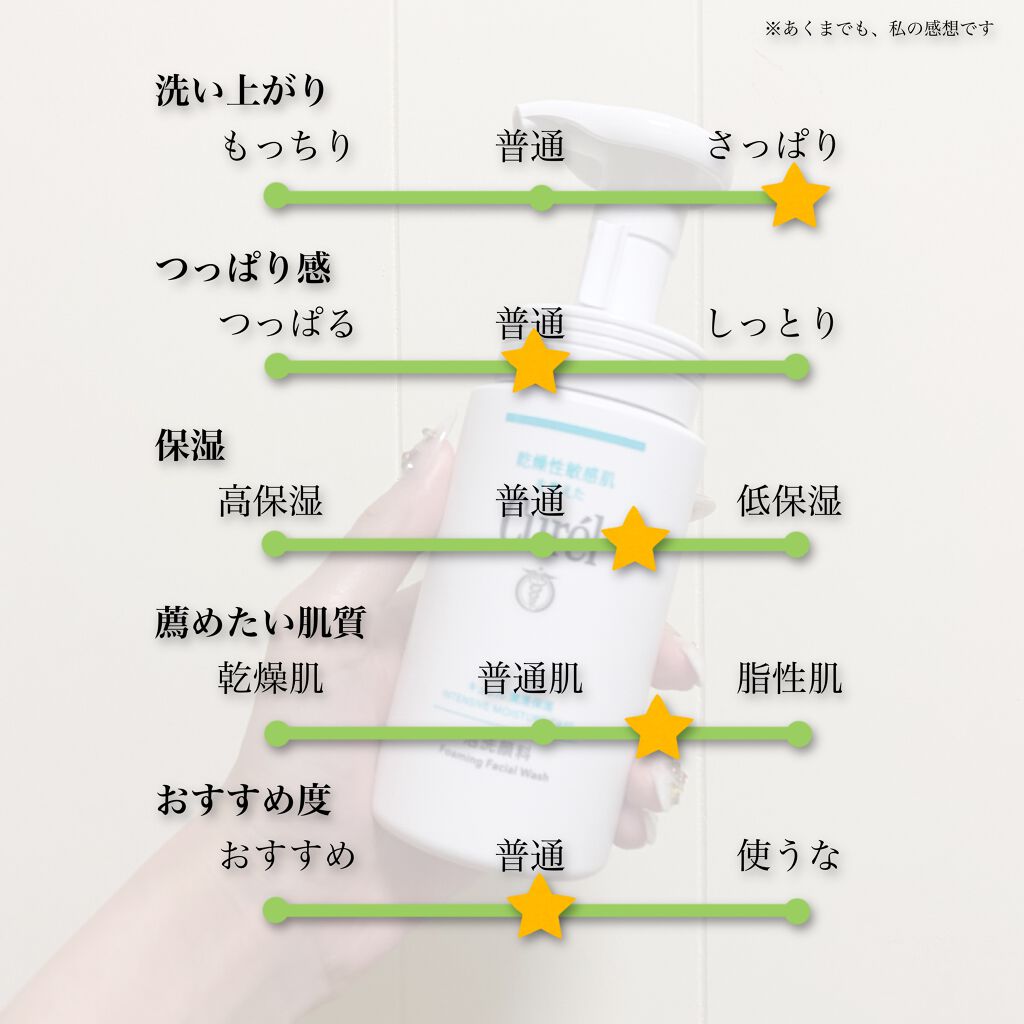 乾燥が気になるこの季節にぴったりの洗顔料です! 洗い上がりがちょうど良く、何回もリピしてる商品です! 泡はやわらかく、きめ細かいです。 モチモチというよりはフワフワなイメージですが、しっかり顔に留まってくれます。 乾燥でお肌が荒れている時はしみる時もありました。 お肌の状態によっては使用注意です。