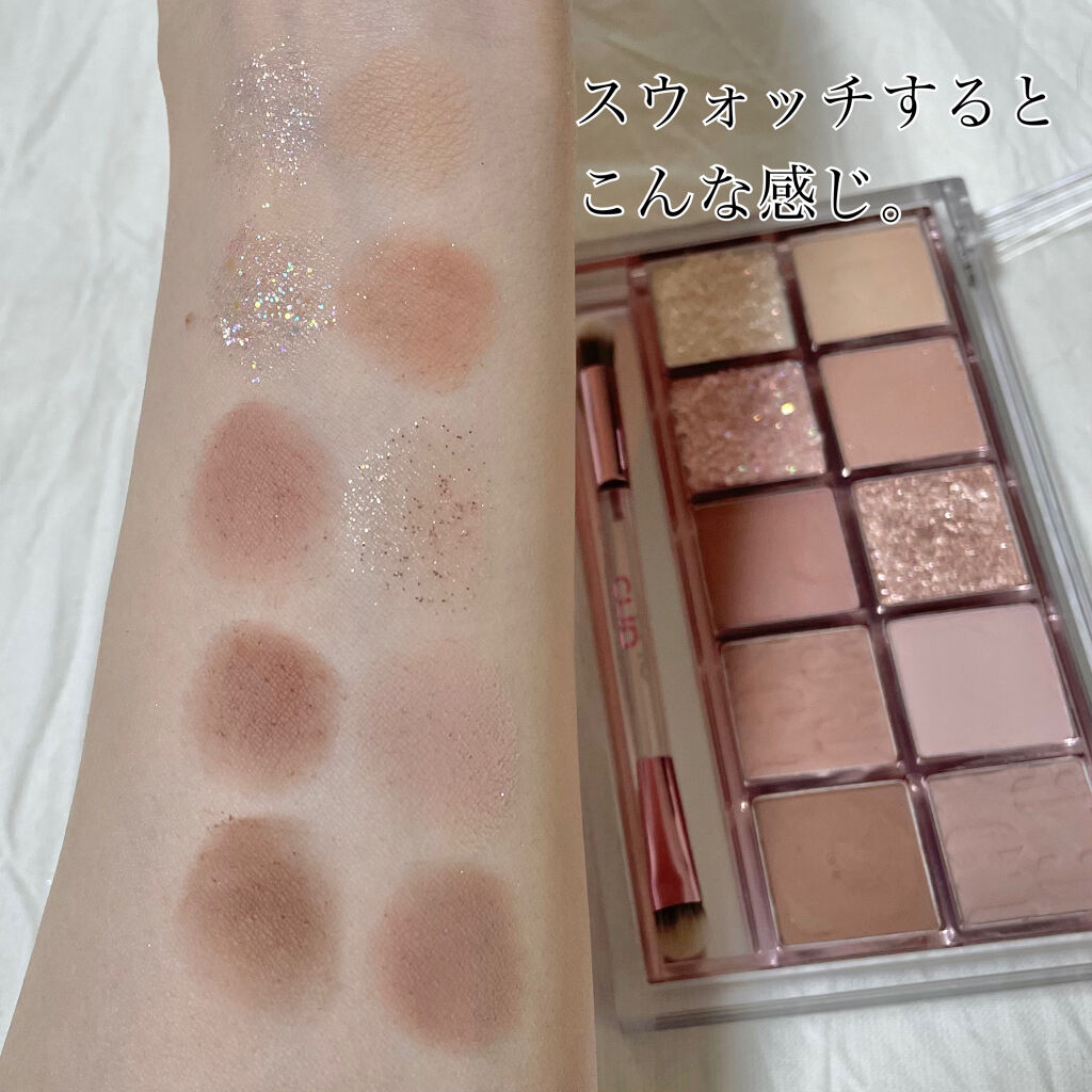 - ひとつのパレットにマット、シマー、グリッターなど多様な質感を贅沢に使用。塗る順序やカラーの組み合わせを変えるだけでデイリーメイクにも、特別な日のお出かけメイクにもできる優れもの。また粉飛びせず、まぶたにしっかり密着します。