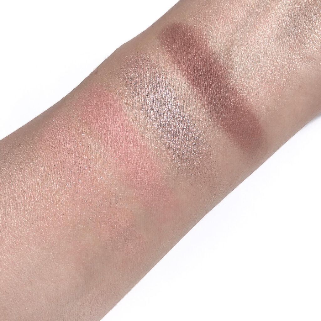 1度塗りでもしっかり発色♡ ラメが細かくて上品な仕上がりになります。 上段右から2番目のWild Roseがザクザクしてそうに見えたけど、粉質は全色とても柔らかいです。 しっとりふわっと軽めな使用感なのに密着良し。 グラデーションもしやすいカラーの組み合わせだと思います。 今は左上のMellifluousがお気に入り♡