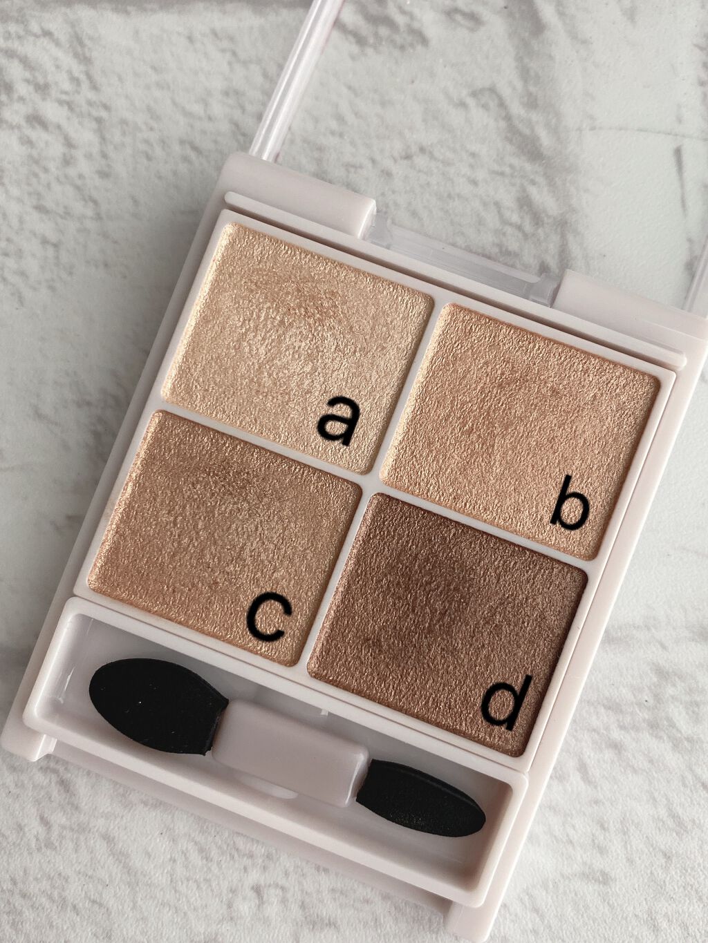 ナチュラルかわいいが作れるこのなんとも言えない絶妙なブラウンカラーがかわいいすぎるんです🥰 私のいつもの使い方は、A→アイホール全体にb→涙袋にc→二重幅にd→目のキワと目尻に 他のアイシャドウと比べて少しクリーム感があってまぶたに密着してくれる感じがめっちゃ良かった!