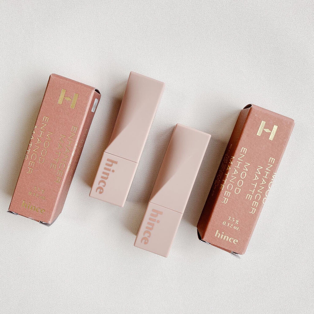 色っぽさを演出してくれるようなむちっとした艶感 奥行きのある感じの絶妙な色味 発色、色持ち◎ おしゃれなデザイン むちっとした艶感で色っぽい唇にしてくれるリップ 本当につやつやでとてもかわいいです🥰 色味もさすがhince、絶妙すぎるカラーです💕 何だか奥行きを感じるような色味です😌 塗って少し時間が経つと、塗ってすぐの色味よりも落ち着いた色味に変化します🕊 ニュートラルベージュカラー ディープバーガンディレッドカラー どちらも大人の女性をイメージさせるような色っぽさ溢れる唇にしてくれる素敵なリップです💋 秋メイクにもおすすめの2色です🍂 艶感を活かすには、ティッシュオフをしないか、あるいはティッシュオフした後にもう一度重ねると良いかと思います☺️