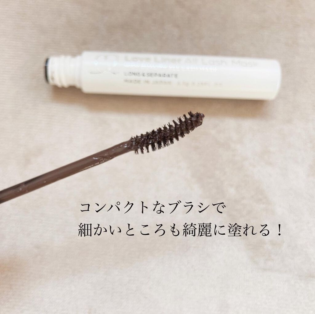 クリームフィットペンシルは肌馴染みの良いブラウン系カラーで展開✨なりたい印象や、髪の色、パーソナルカラーを考慮しつつ日常使いできるカラーをチョイスできます🙆♀️✨汗や皮脂、涙に強いウォータープルーフタイプなのに計10種の美容成分も配合されているのでデリケート瞼の皮膚を労りながらメイクを楽しめる🥰さらに、粘膜の繊細な部分を埋める時もがっつりライン引きたい時も使いやすい楕円芯というのも便利👏💓 オールラッシュマスク(マスカラ)は19mmのミニマルブラシで短いまつ毛もしっかりキャッチしてくれる✨フィルムタイプで綺麗に付くからテクニックなしでも自然なセパレートまつ毛が完成☺️ウォータープルーフだけどぬるま湯OFFできます🙆♀️✨ 持ちやすさ・使いやすさのために本体の長さや重みまで工夫されているそう!さすがラブライナー😳❤️