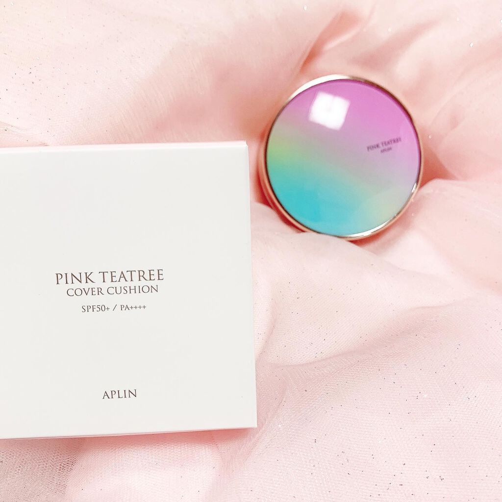 APLIN ピンクティーツリーカバークッション 21号ライトベージュ 2,490円(税込) 少量でよく伸びてハイカバー! 赤みやくすみをしっかりカバ一できるのに、厚塗り感のないなめらかな仕上がり♡ ハイカバーなのにナチュラルなツヤ感とサラッとしつつ、乾燥崩れしにくい仕上がりに感動します!!
