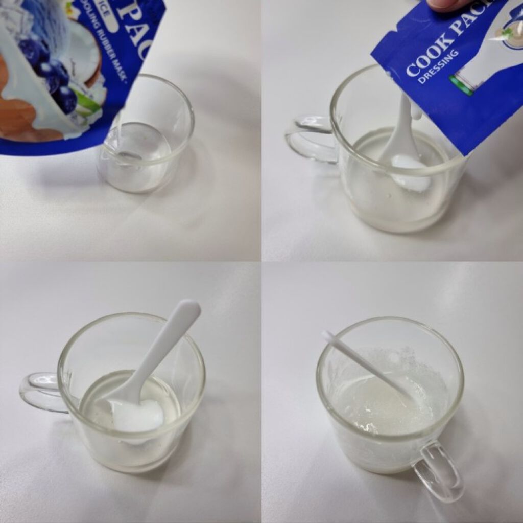 モデリングパック家でするのは難しいけどそれを可能にするイッタン!クックパックは総4種類でブラック、ホワイト、アイス、レッドで構成されていて私がもらった商品はその中のホワイトです:)容器とスパチュラーが入っていて他に道具が必要ないという事が長所...
