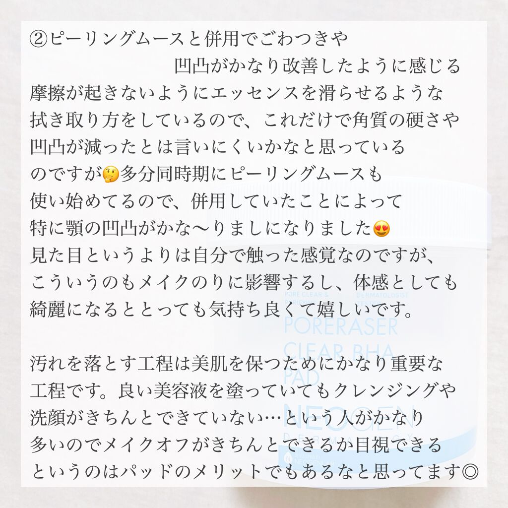 角栓などによるざらつきが気になる方や毛穴悩みのある方におすすめなパッド✨ マイクロファイバー生地で作られた大きめサイズのパッドもポイント✨ パッド使用後は肌が滑らかになり、ざらざらしていた箇所もつるつるした触り心地になるなと感じています🤍
