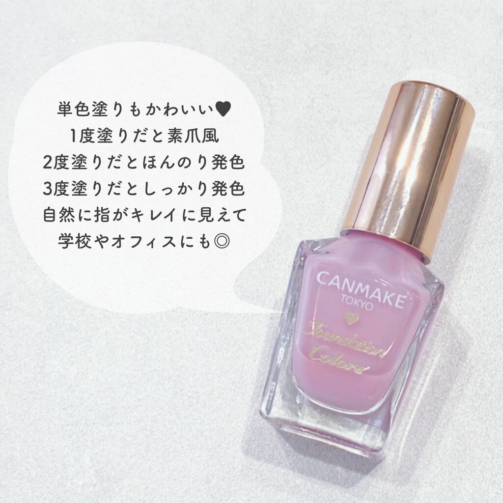 キャンメイクのファンデーションカラーズは1度塗りでも重ねても使いやすくて万能◎ 職場が厳しくて、長い爪もネイルアートも禁止 肌に近いワンカラーのみ可なのでこういう血色感出て手に馴染むネイルは嬉しい🥰 トップコートはセシェがお気に入りです◎