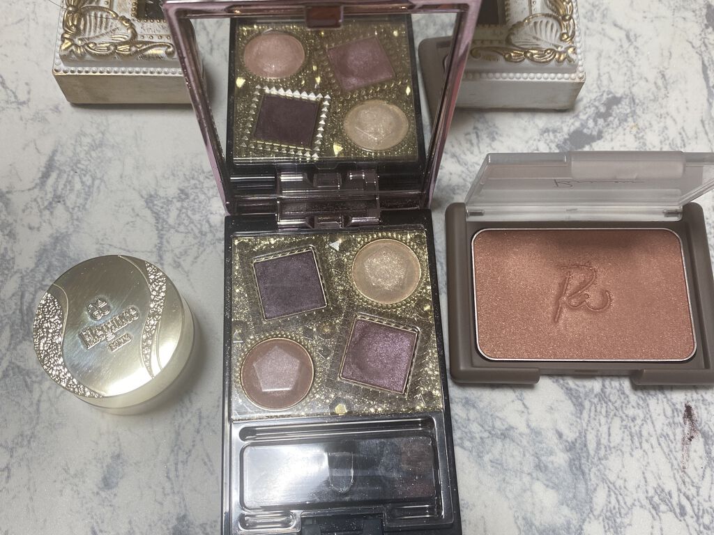 アイシャドウはNARS アンインヒビテッド アイシャドーパレット 一目惚れして買ったくせに1度しか使ってないwww買って満足しちゃうんだろうな。 結局は4色パレットに手が伸びてしまいます。 ハイライトはローラ メルシエ / LAURA MERCIER フェイスイルミネーター 04 ディボーション チークはAQ ブラッシュ AQ ブラッシュ 04