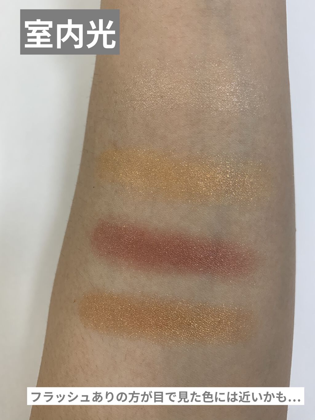 友達が良いって言うけど、色がどれも可愛くて選べませんでした笑 今回出た新色のシナモンスエード!!! 私が持っているパレットにはない配色でした。 SUQQUの秋コスメにも似たような配色ありませんでしたっけ?可愛い!!って思ってたんです! この通りに塗ってみるとなんと美しい事!!!! オレンジの上にパープルを重ねると抜け感のある深いブラウンに見えます! 全体的にはオレンジメイクに見えるかもしれませんが、パープルがある事によって落ち着いて見えるので、オレンジメイク!!ってのが似合わない場面や、秋で落ち着きたい時にぴったり! excel特有のこの艶感がより上品さを醸し出します!!質感もしっとりしていて、人気な理由が分かりました、、