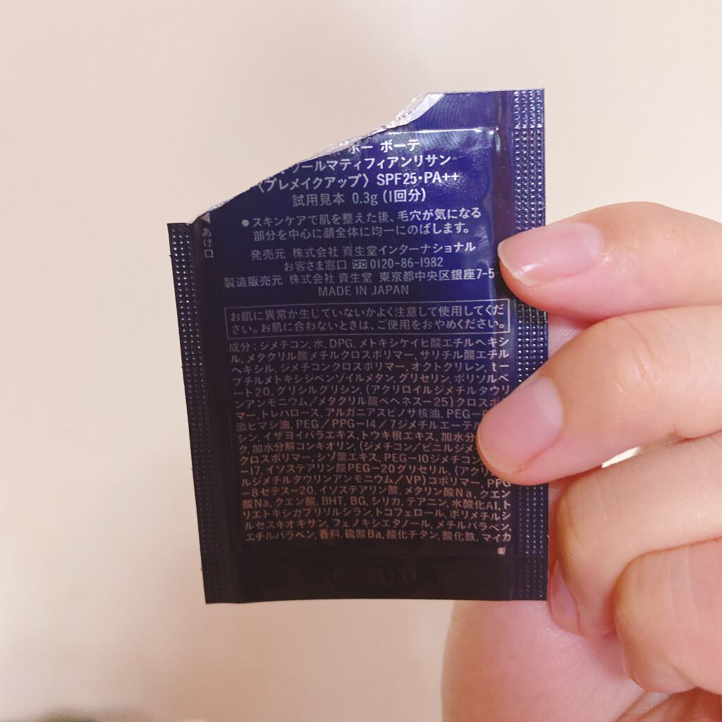 - <40g> マイカ、シリカ、水、酸化チタン、BG、グリセリン、ジメチコン、フェノキシエタノール、メチルパラベン、メタクリル酸メチルクロスポリマー、香料、トコフェロール、水酸化Al、酸化鉄、メトキシケイヒ酸エチルヘキシル、ポリメチルシルセスキオキサン、グリシン、サリチル酸エチルヘキシル、トリエトキシカプリリルシラン、DPG、テアニン、トレハロース、PEG/PPG-14/7ジメチルエーテル、クエン酸、イソステアリン酸、加水分解シルク、加水分解コンキオリン、PEG-60水添ヒマシ油、トウキ根エキス、アルガニアスピノサ核油、PEG-10ジメチコン、ポリソルベート20、オクトクリレン、エチルパラベン、(アクリロイルジメチルタウリンアンモニウム/VP)コポリマー、クエン酸Na、BHT、イソステアリン酸PEG-20グリセリル、メタリン酸Na、イザヨイバラエキス、(ジメチコン/ビニルジメチコン)クロスポリマー、ジメチコンクロスポリマー、t-ブチルメトキシジベンゾイルメタン、グリシルグリシン、シソ葉エキス、硫酸Ba、(アクリロイルジメチルタウリンアンモニウム/メタクリル酸ベヘネス-25)クロスポリマー、PPG-17、PPG-8セテス-20