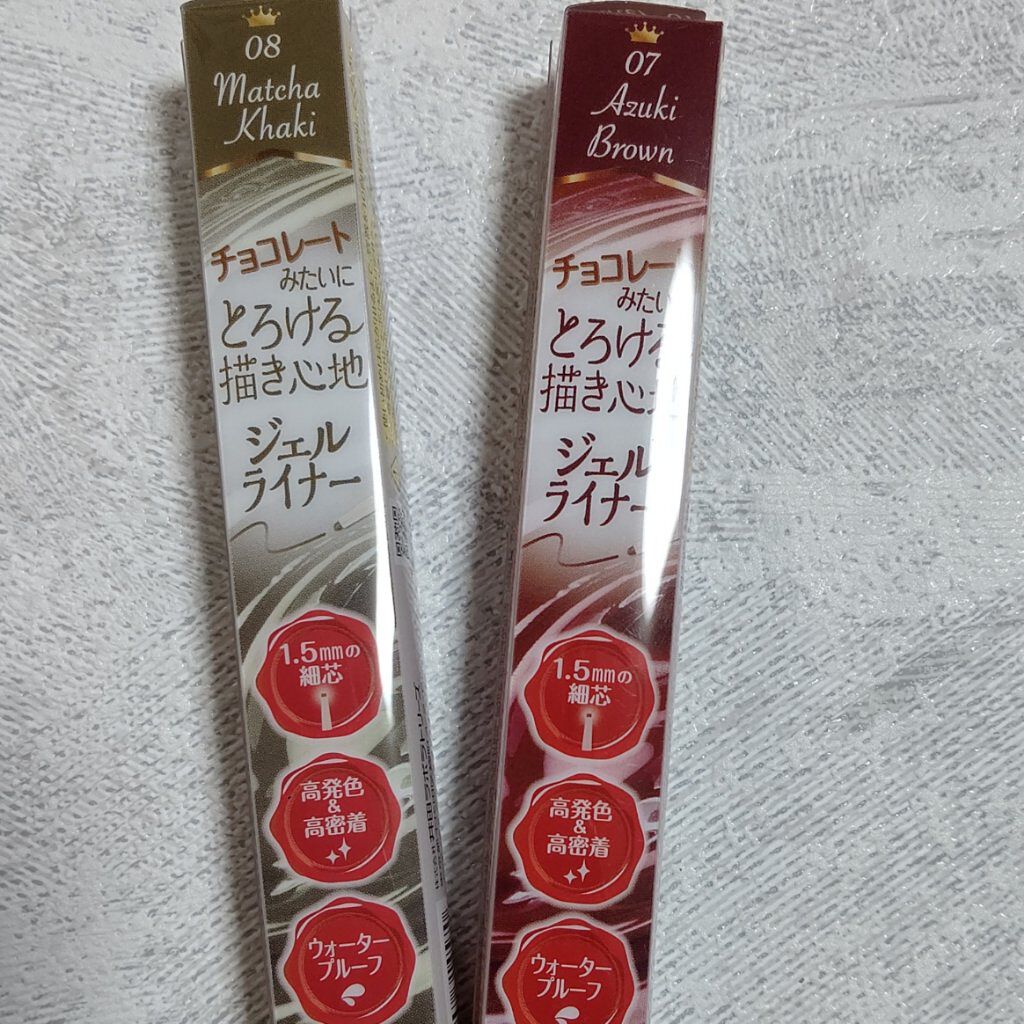 アイライナーはこのシリーズが大好きで全色所有しています♡ こちらの 07 アズキブラウンはボルドーにブラウンを足したようなお色味です♡ 私はとても使いやすく、大好きなお色味です♡ スルスル描きやすい、発色がいい、お色味がオシャレ、汗や水に強い、落ちにくい、比較的どこでも購入できる。 これからもリピートします♪