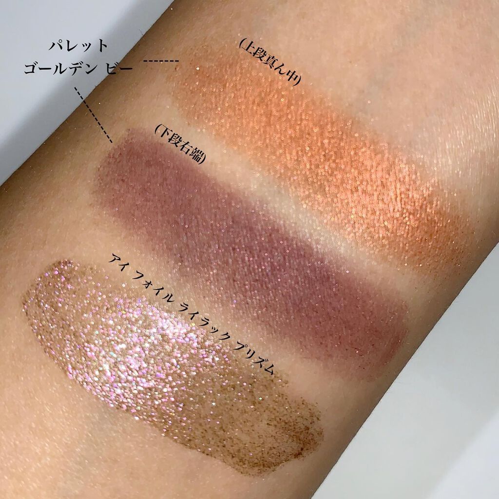 今回の新色は"まぶたに濡れたような光沢を放つ艶、光を操る立体感をプラスしリュクスなまなざしを叶えてくれる"というプリズムフォーミュラ。 確かにいつもとはちょっと違う…良いですこれ🫶❤️ ヌメッと面で光るようなツヤ感✨ テクスチャーは刻印ありタイプ、ツヤはクリームタイプに近いと思います🥰 要は刻印ありとクリームの良いとこ取りですね! ゴールドと柔らかいレッドの組み合わせ。アプレスキーとエレクトリックチェリーの中間のような色合い🤔 ゴールドとピーチカラー。今回の3色の中では一番黄みが強い。 青みがかったローズが可愛い。ぱっと見はわからないけど左上にみんな大好き青ラメが…!!