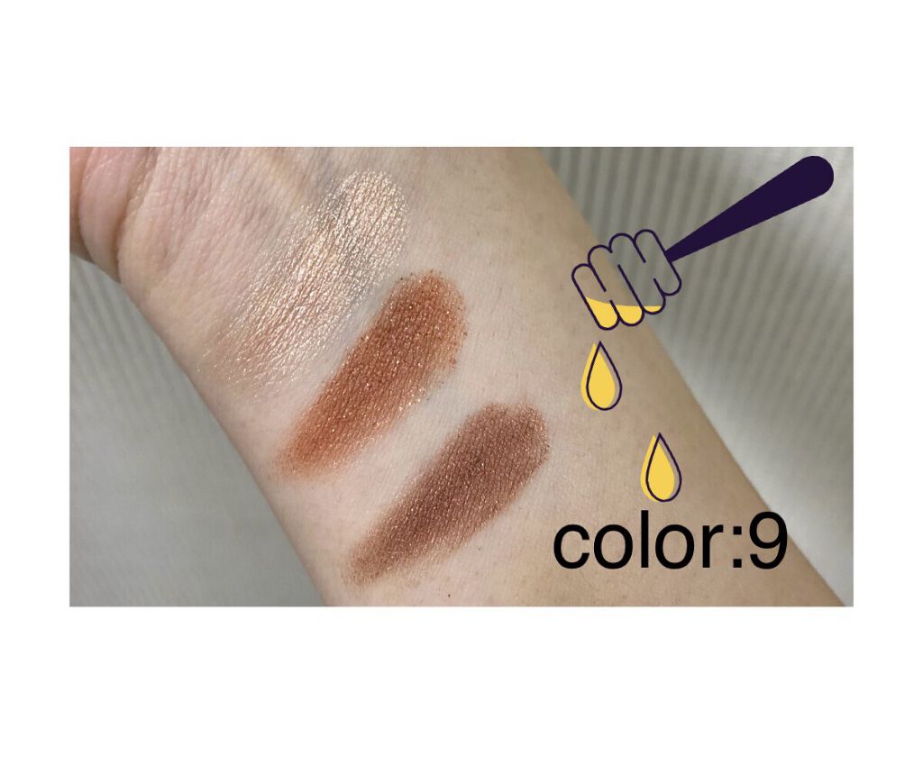 ハニーブラウン👉一番左はイエローベージュ真ん中はコーラルよりのオレンジ一番右はダークブラウン ブリックブラウン👉一番左は肌馴染みのいいベージュ真ん中はキャラメルのような若干赤みも入ってる一番右は赤みのあるブラウン どちらもデイリー使いしやすく、とくに9番の新色はこれからの秋メイク🍂に使いたくなるようなおしゃれなカラーでした❣️