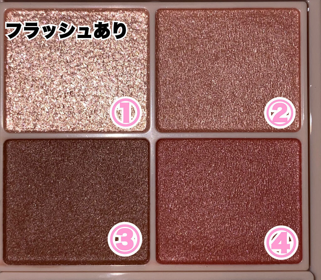 - シルキースフレアイズの姉妹品♡ 肌に溶け込むような透けマットシャドウ 透け感のある柔らかい仕上がりになるマット3色と、透け発色の繊細ラメ1色のパレットシャドウ♡ 完全マットアイや、ラメ×マットアイなど、メイクのパターンを楽しみましょう!