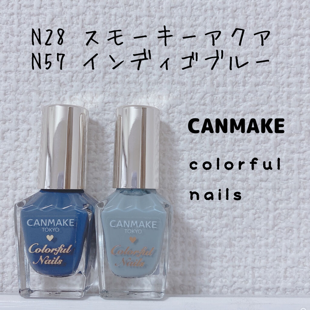 人気色だったと思うのにこの秋廃盤の 〚N28 スモーキーアクア〛 気になる方はお早めにチェックを🙌🏻 キャンメイク カラフルネイルズ ¥396 〚N28 スモーキーアクア〛 Dear.A シャインオンミーネイルカラー ¥990 〚SE22. Moonlight〛