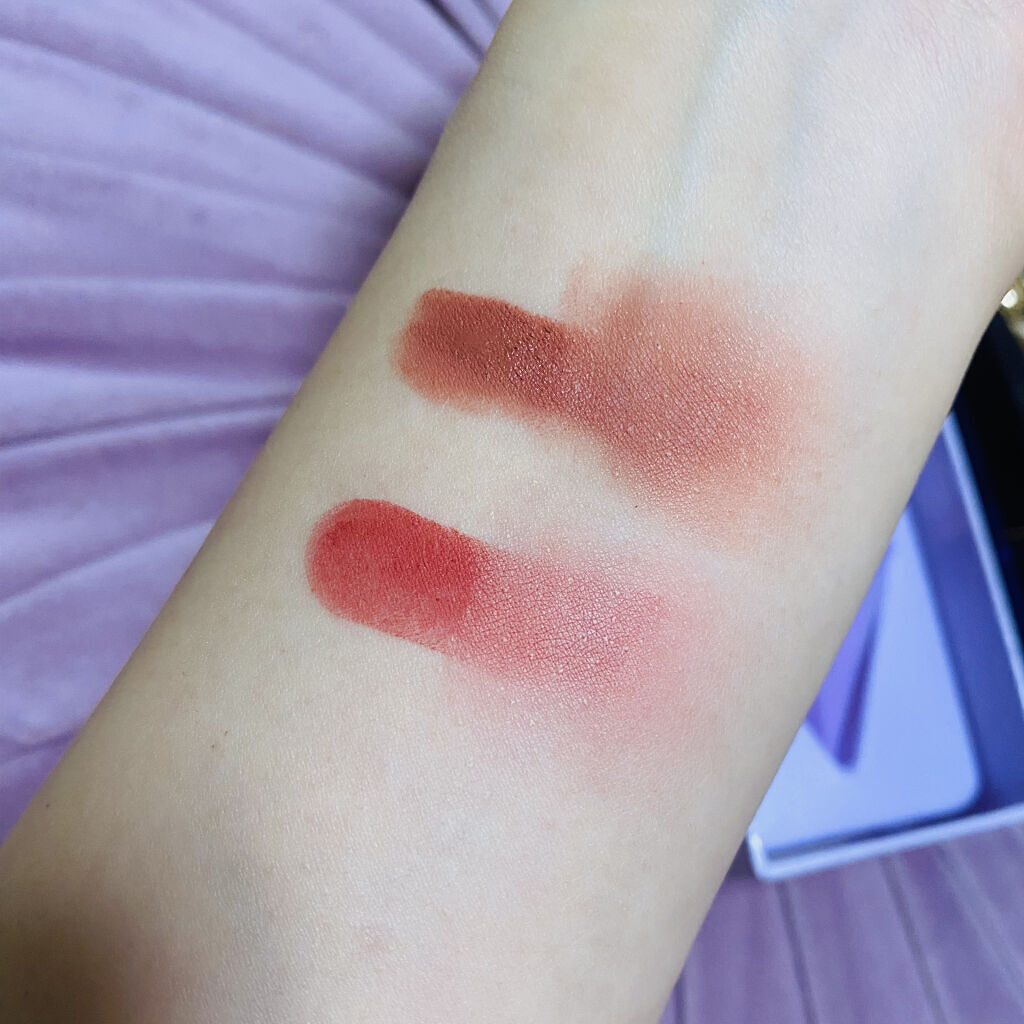 また勢いで買っちゃったよー😥 03ローズ コライユは蛍光ピンクって感じで、06ローズ ヴルールはピンクブラウンって感じでめっちゃかわいい😳‼️ クリームチークはあまり使った事がないのですが、塗るとパウダーに変わる感じで、ベトベトはしません👍 驚いたのは結構密着力あります‼️😳 マスクメイクにも向いてるとのこと👍 良かったです😁✨