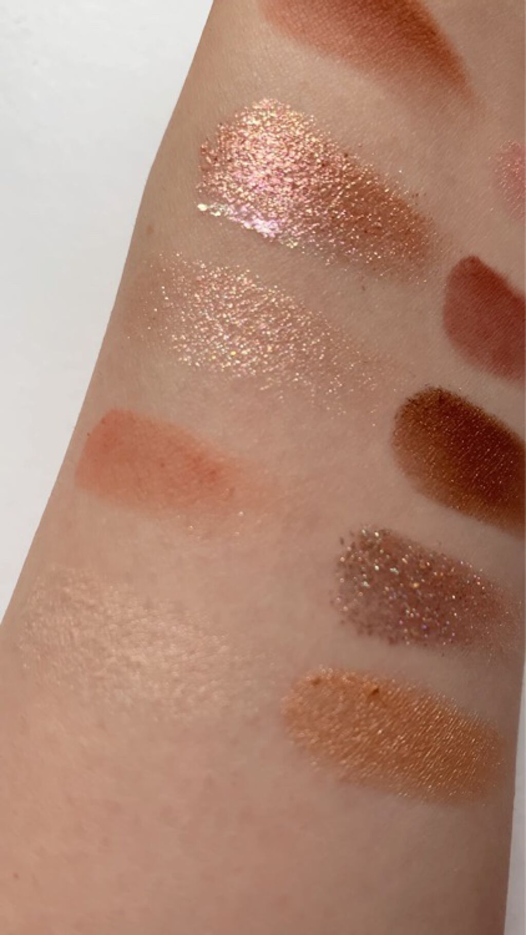 - ひとつのパレットにマット、シマー、グリッターなど多様な質感を贅沢に使用。塗る順序やカラーの組み合わせを変えるだけでデイリーメイクにも、特別な日のお出かけメイクにもできる優れもの。また粉飛びせず、まぶたにしっかり密着します。