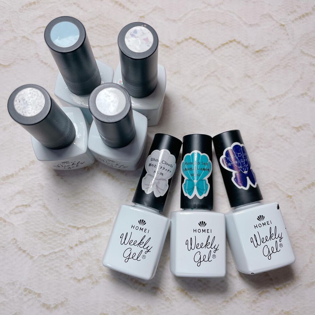 ✍🏻HOMEI🤍ウィークリージェル💖WG-5Ciel💖HOMEIウィークリージェル/ディズニーストアD-6💖HOMEIマグネットトップジェルくすみブルー🩵シアーなパープル🪻オーロラマグネットトップジェル🧲この重ね技で紫陽花みたいなカラーのネイ...