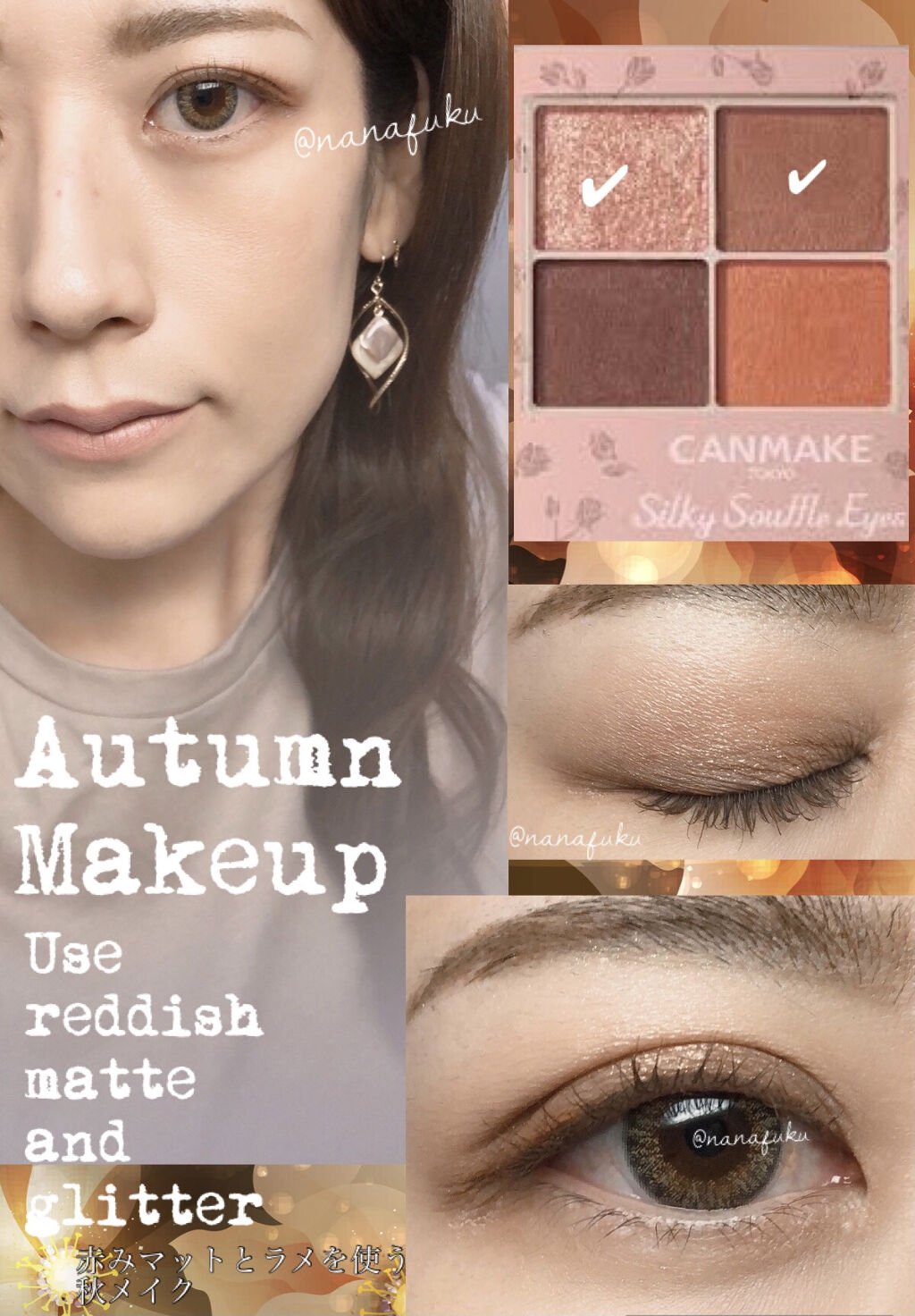 言わずともイエベさん推しなカラー✨ 粉質は言うまでもなく素晴らしい👏✨ カラーもふわっとしていてブラシでぼかしやすい😺 右下のミルキーなテラコッタがもー✨キレイ😻✨ダイコウブツ 3色がマットで1色だけラメなんですがこのラメがまた絶品✨✨🙀 デパコスのラメに負けず劣らず! シアーな感じの微細多色ラメがマットに花を添えます😻✨ 全体に乗せるのではなく真ん中に指付けでポンポンしてください😸 ラメとマットの遊びゴコロある目もとに仕上がります💕 今回のメイクで右下のテラコッタ?オレンジを下ラインですこし🤏入れましたが上に入れてもカワイイと思いますよ👍