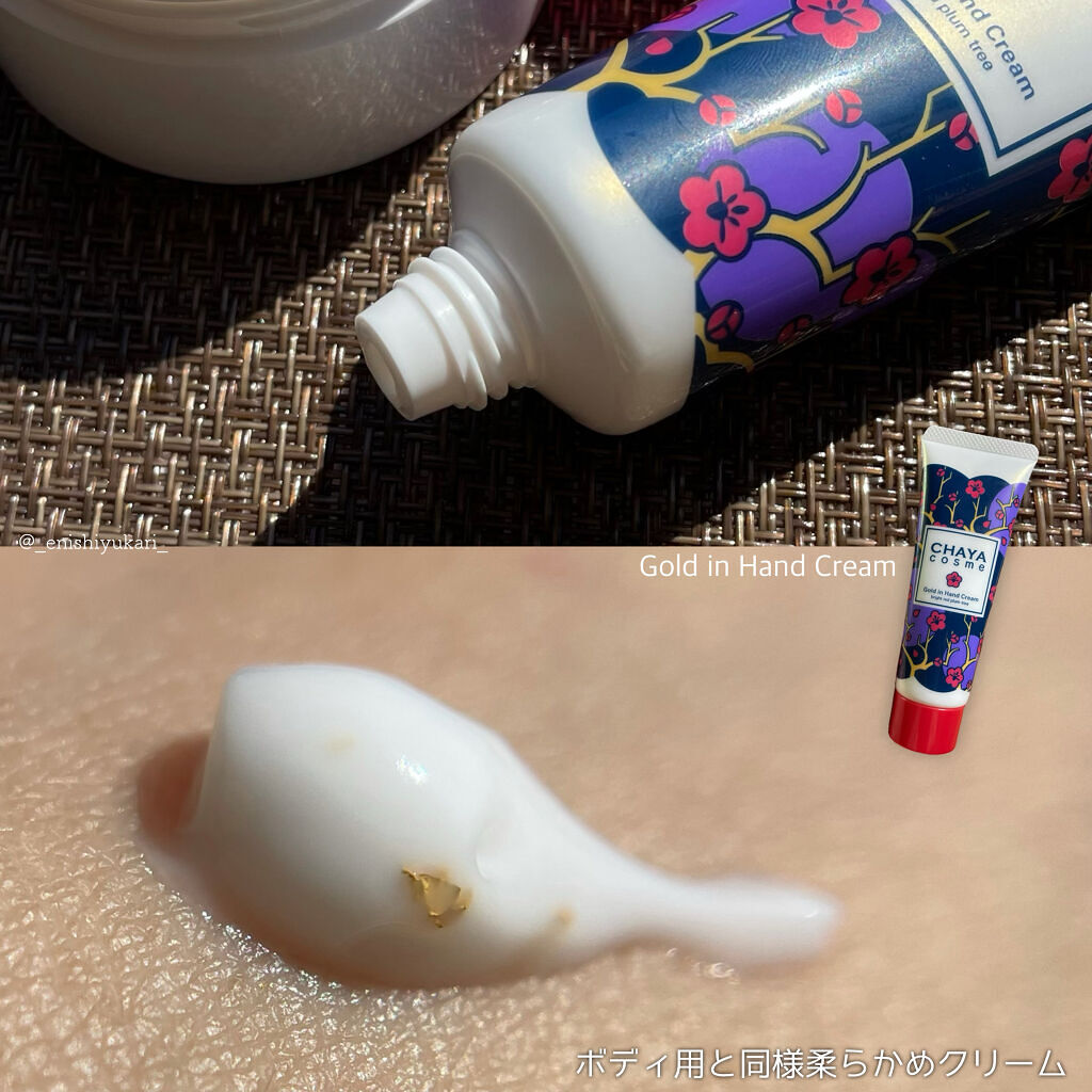 金箔入りのハンドクリームCHAYAcosmeゴールドインハンドクリーム紅い梅の香りをお試しさせていただきました❣️金沢市ひがし茶屋街で生まれた「CHAYAcosme(チャヤコスメ)」は、茶屋文化が映し出してきた魅力をコンセプトにしたコスメブラ...