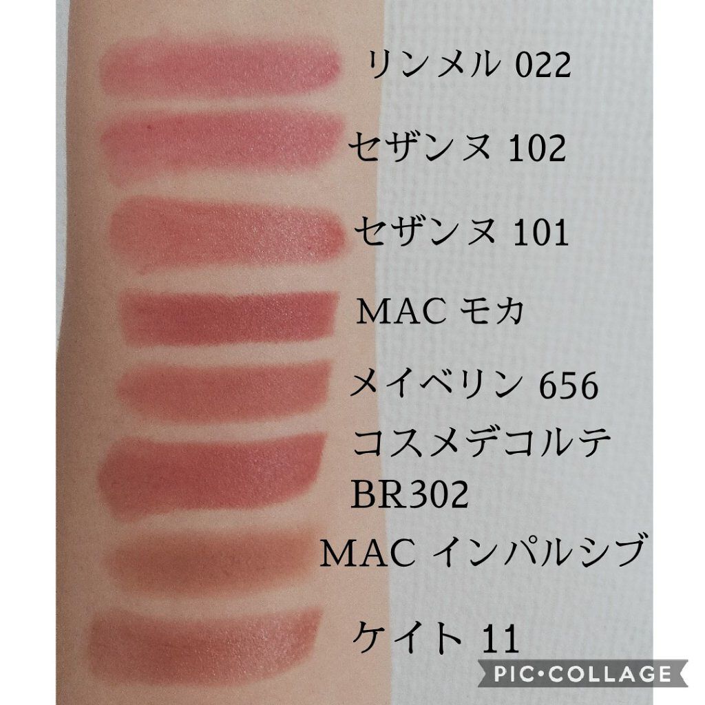 シアーだけど、割りとしっかり色づくリップです。 確かに落ちにくいし、マスクにも付きにくいと思います。 肌馴染みの良い色だと、時間が経つとリップの色が目立たなくなってしまうので、時間が経ってもしっかり色が残って欲しいと思う人は、ハッキリめの色を選んだ方がいいかもしれません。 02 Pink banana ニュートラルなピンク。ほんの少しだけ赤みよりな感じがします。 03 陽炎 最近まで「ようえん」だと思っていた…。イエベが使いやすそうな黄みよりのソフトベージュ。ちょっとピンクっぽさもあってきちんと血色良くみせてくれるベージュです。 11 5:00AM ネット限定色です。少し赤みを感じる大人っぽいブラウン。こちらは、秋タイプオススメになってることが多いと感じます。