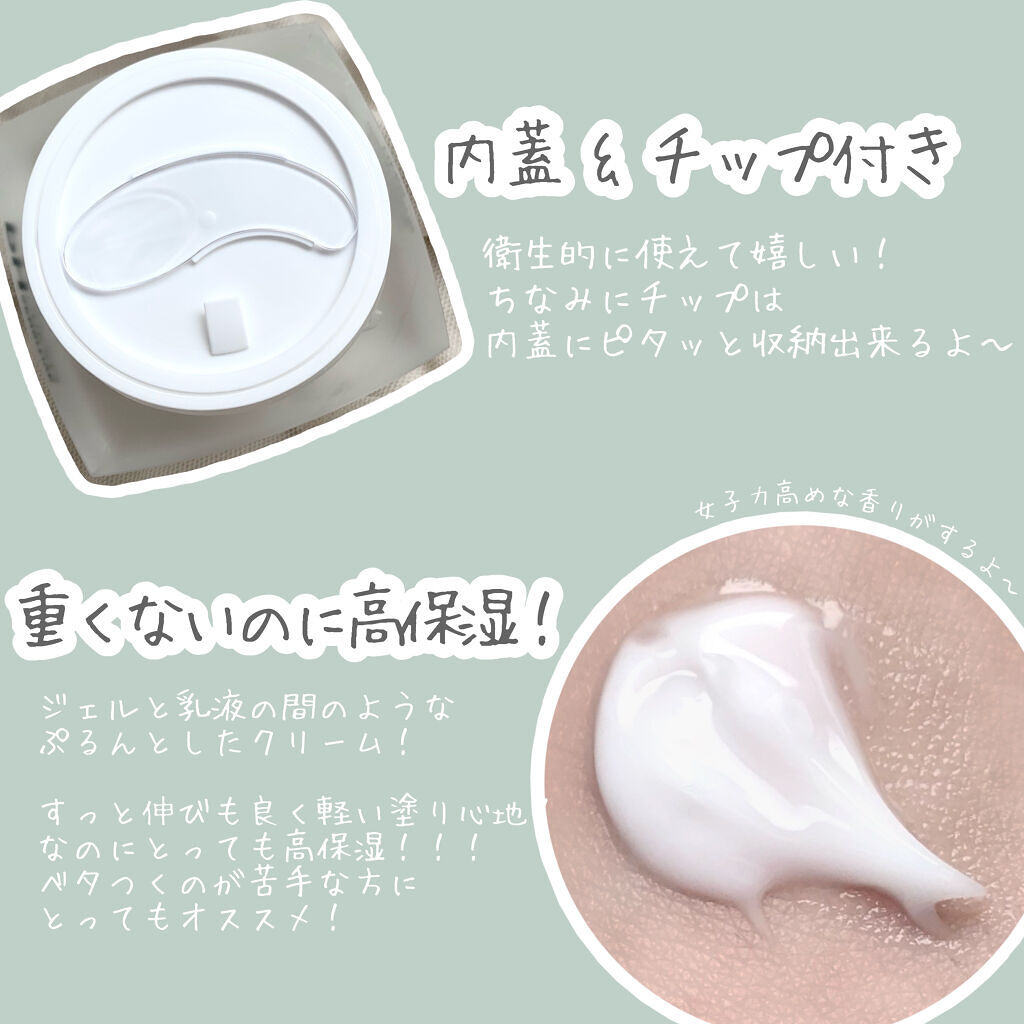 | テクスチャーはふわっとしたクリームで肌に馴染みやすくベタつきはなし 本当に使いやすいクリームです✨ | 詳細を見る | ||