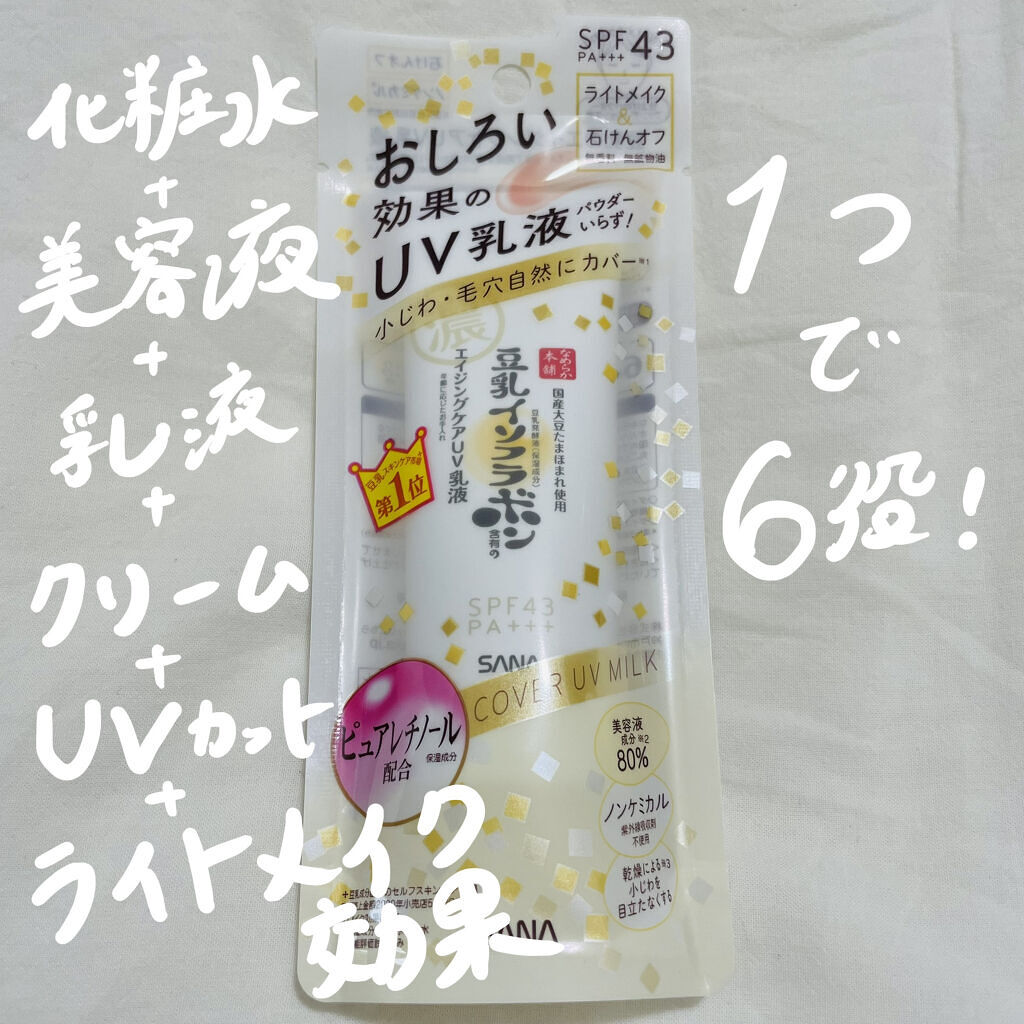 - ほうれい線・小じわのメイクよれが気になる方におすすめの日中用カバーUV 乳液です。リニューアルしたなめらか本舗エイジングケア*1ライン共通の、滋賀県産たまほまれ使用の豆乳発酵液*2とピュアレチノール*2を配合しています。リンクルリフレクト効果で、ほうれい線や小じわを目立たなくし、時間が経ってもメイクよれが気にならない処方を採用しました。お肌にうれしいノンケミカル(紫外線吸収剤不使用)処方で、洗顔後これ 1 つでスキンケアからベースメイクまで完成。 乾燥による小じわを目立たなくします(効能評価試験済み)。 SPF43・PA+++、石けんでオフできます。 *1年齢に応じたお手入れ *2保湿成分