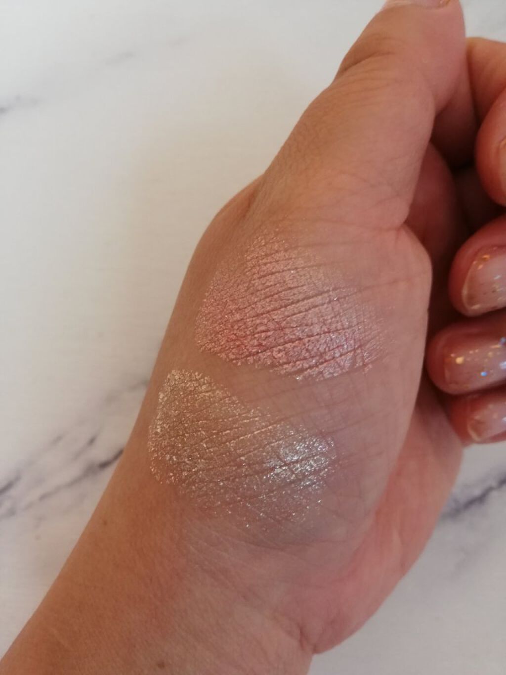 上の段の2色をよく使います、地黒イエベの肌に合っていて目元を明るくきれいに仕上げてくれます。 これもとっても可愛くて涙袋に使うことが多いです。またまたこれも私の肌色に馴染み盛ってくれます。画像より塗ると明るいです。