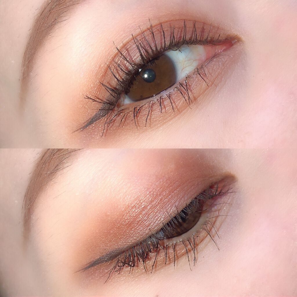 ベースメイクをパウダーファンデでなるべく薄めにしあげています。あまりにも粉っぽくベースを仕上げるとマットアイシャドウの付きが悪くなりそうな気がするので(なんとなく)…😅 パレット左上のベースカラーだけはアイシャドウブラシ(大)それ以外は(小)のブラシで塗っています! 涙袋の影は付属のブラシの細い方で。仕上げに涙袋に左上のベースカラーを少しのせると涙袋がふっくら見えてオススメです◎!