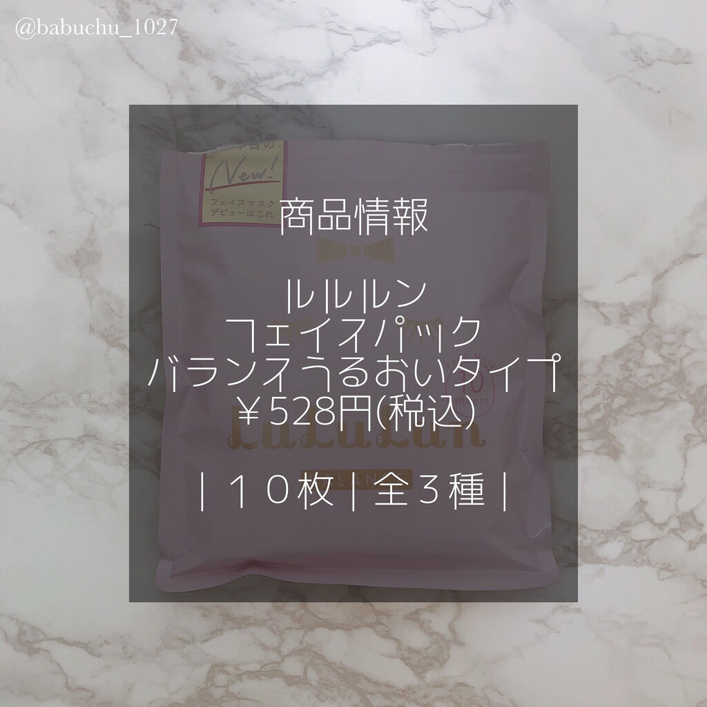 \10日間連続使用/❥ルルルン❥フェイスマスク❥660円(inITS’DEMO)✎*レビュー大好きなルルルンのパックがリニューアルしたということで購入しました🙌リニューアル前とは枚数も値段も変わっていて、新しい方は1袋につき10枚入っています...