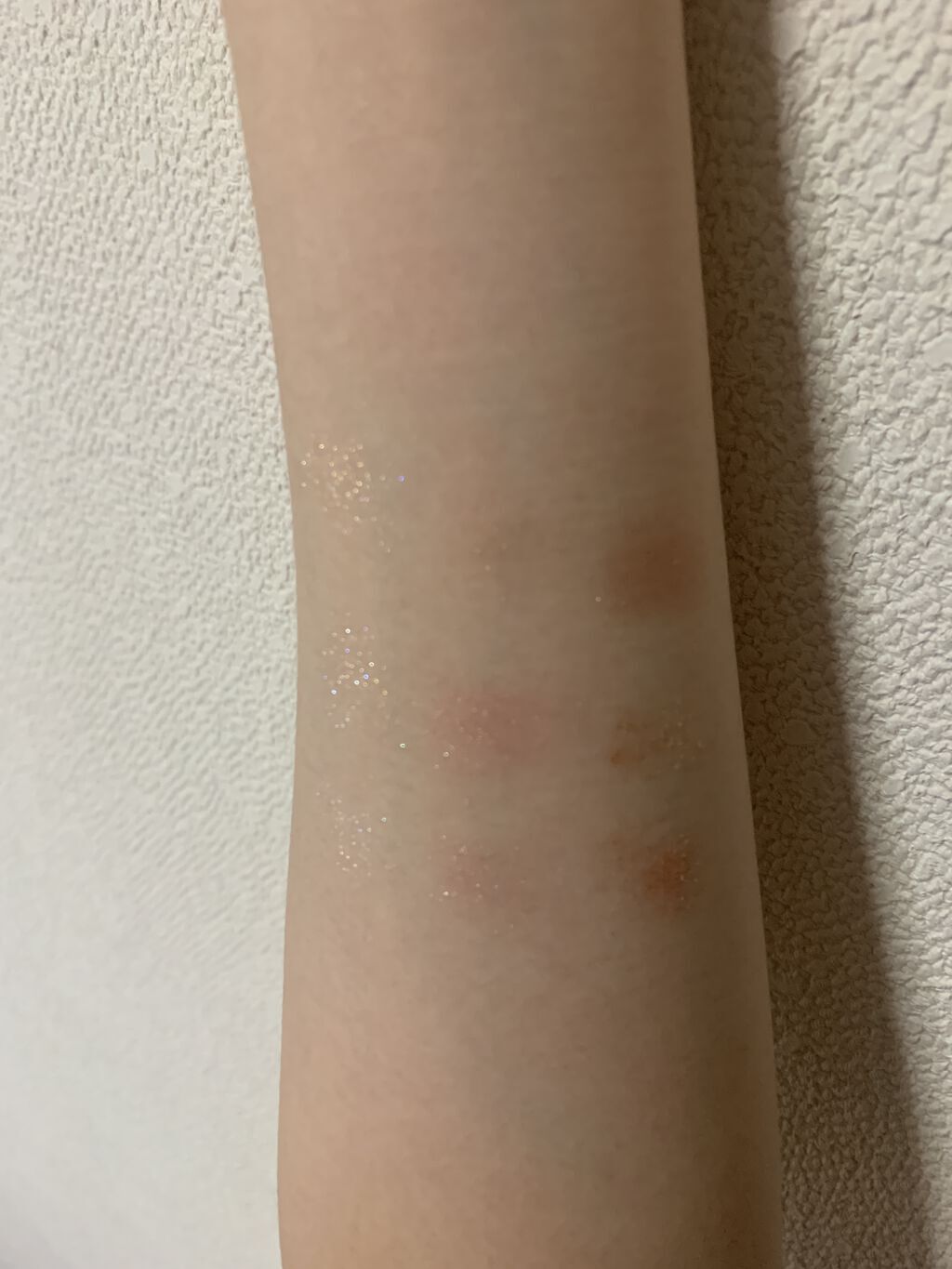 このパレットは締め色がなくて、濁らないと浮いちゃう私には結構難しかった😂 左上が細かめのラメに対し、右上は珍しいザクザクなラメ。黒目の真ん中に右上乗せたけど扱いづらい大きめラメなのもあって難しいな〜と思った。 このパレットは色!!ってよりもラメ!!ツヤ!!ほんのり血色!!みたいな素の目にちょい足しする…みたいな感覚のパレットなのかな〜🤔