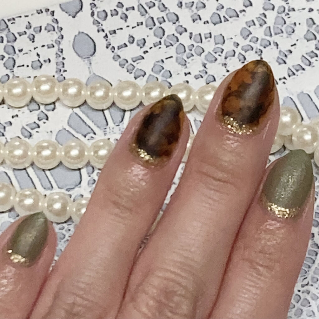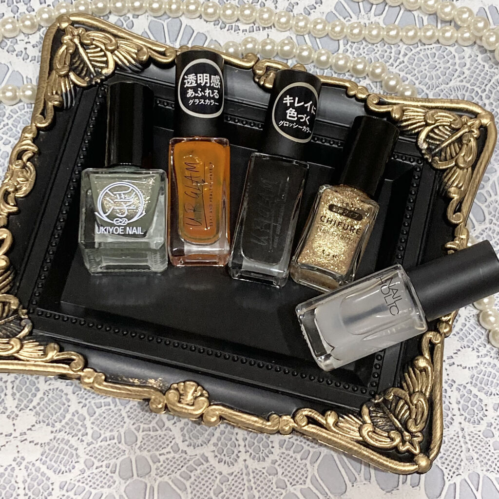 まずベースを塗ってから トップコートを塗り (使用してるものはこれ一本でOK) トップコートを塗ったら半乾きの状態で 指or使い捨てアイシャドウチップ等使用して アイシャドウをポンポンと塗ります。 塗り終えたら更にトップコートを塗って 半乾きの状態でアイシャドウを… アイシャドウ塗っただけだと、ん? ってなるけど、上からトップコート重ねると パールやラメやツヤ感が出て綺麗✦ฺ