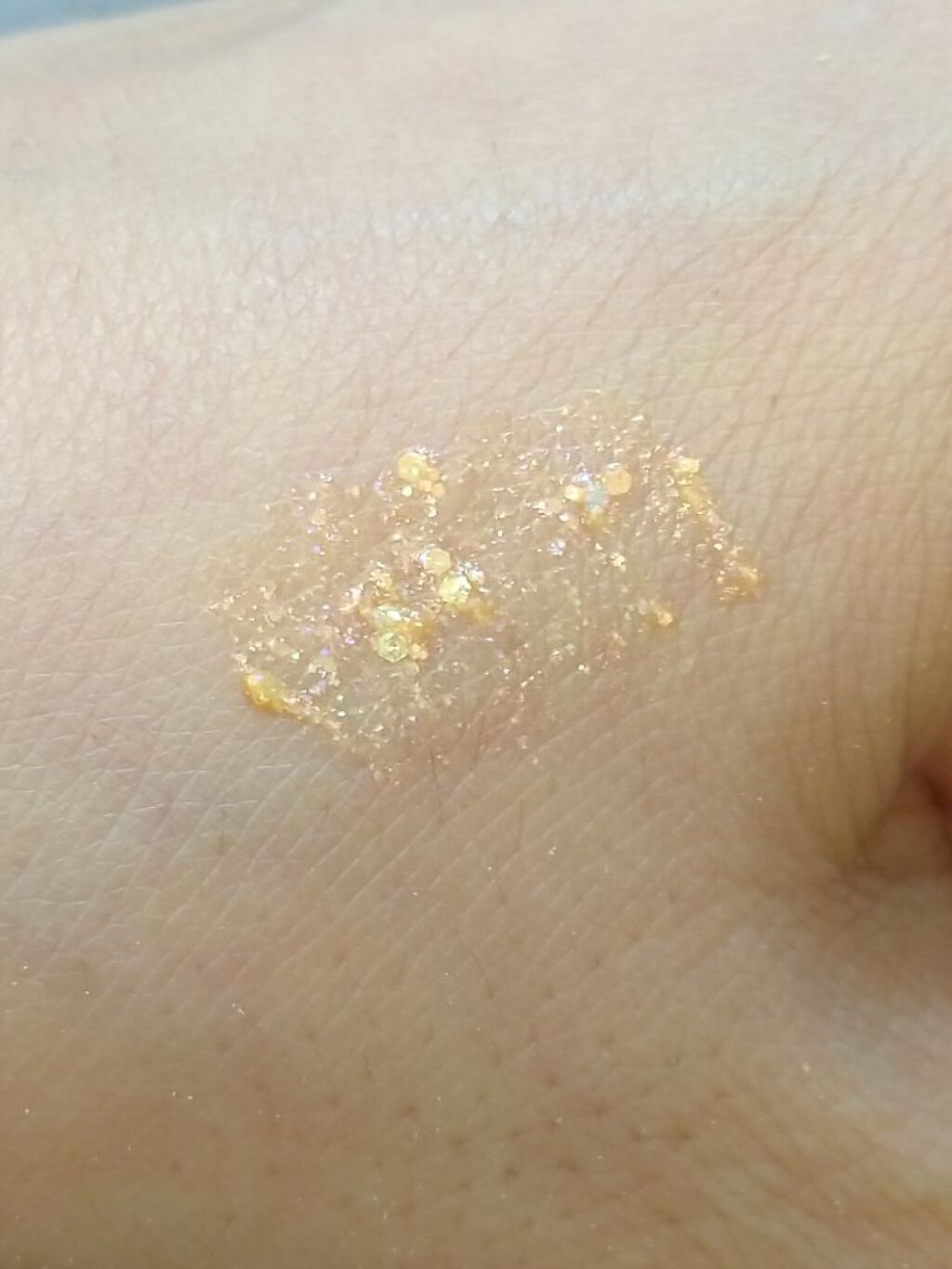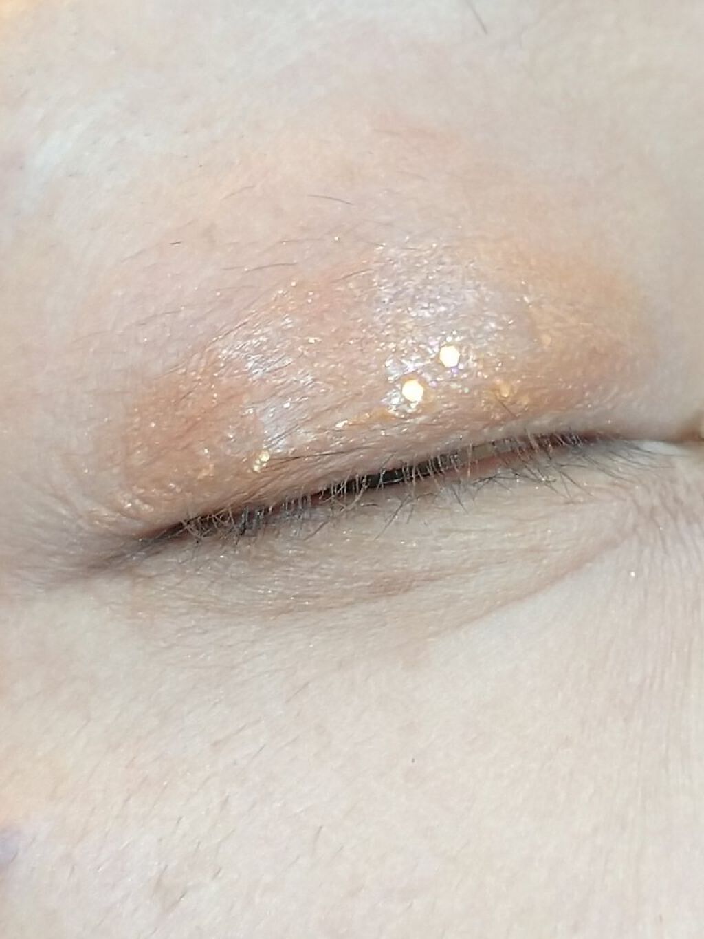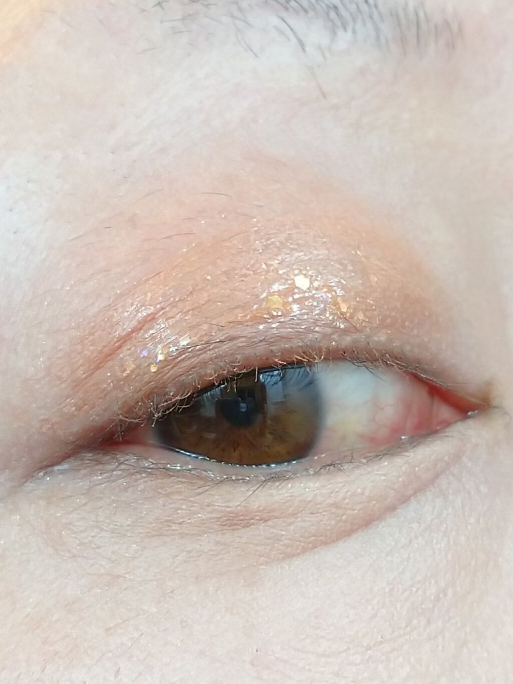 細かいラメと大きめのホログラムが混じっています꒰ˆ•ﻌ•ˆ꒱ 瞬きする度にキラキラしてかわいいです。 よく見ると色々なカラーのラメでてきていますがつけると自然ですฅʕ •ﻌ• ʔฅ