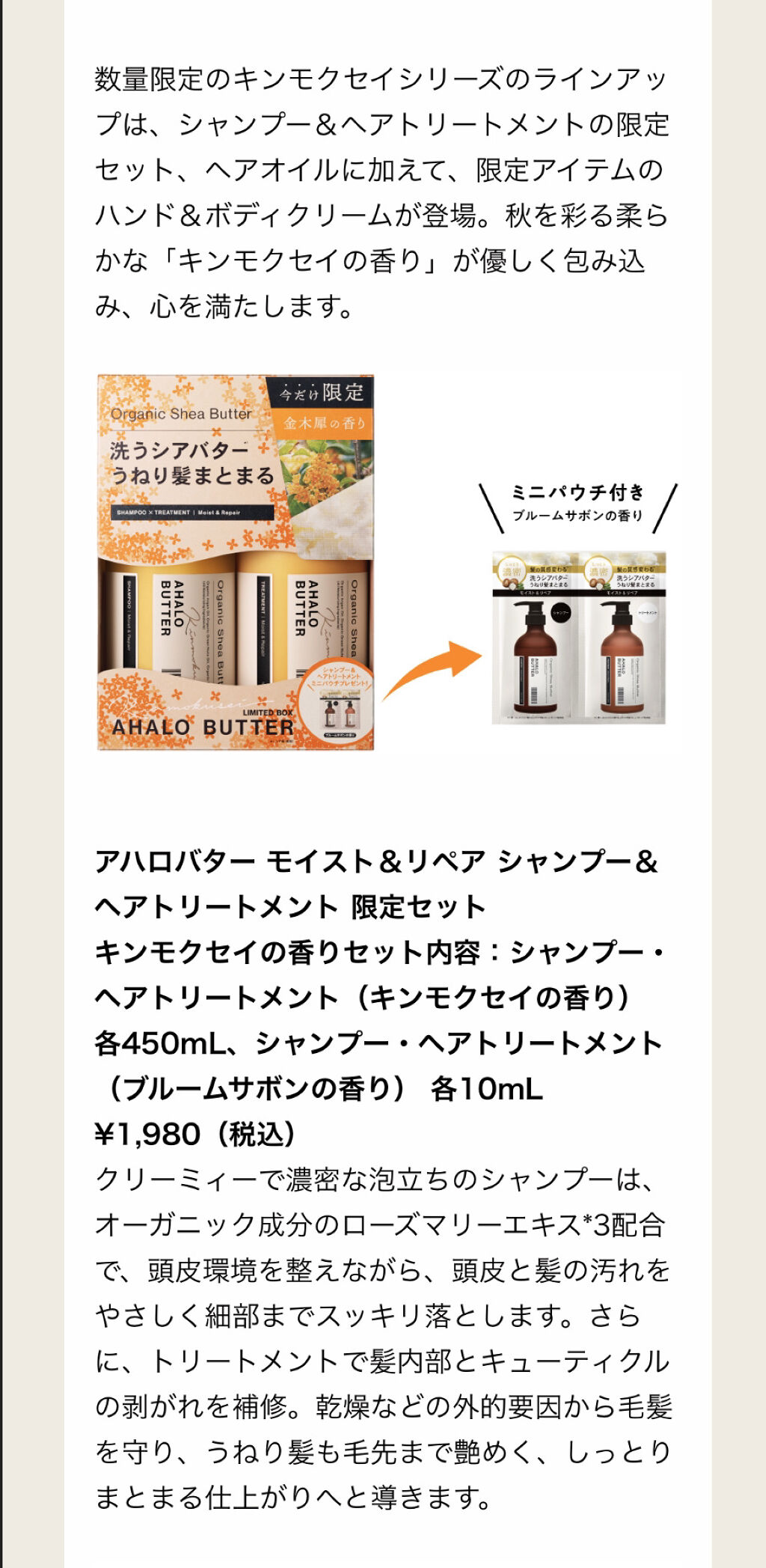 AHALO BUTTER モイスト&リペア ヘアオイル キンモクセイの香り | 1,320円生産終了 |