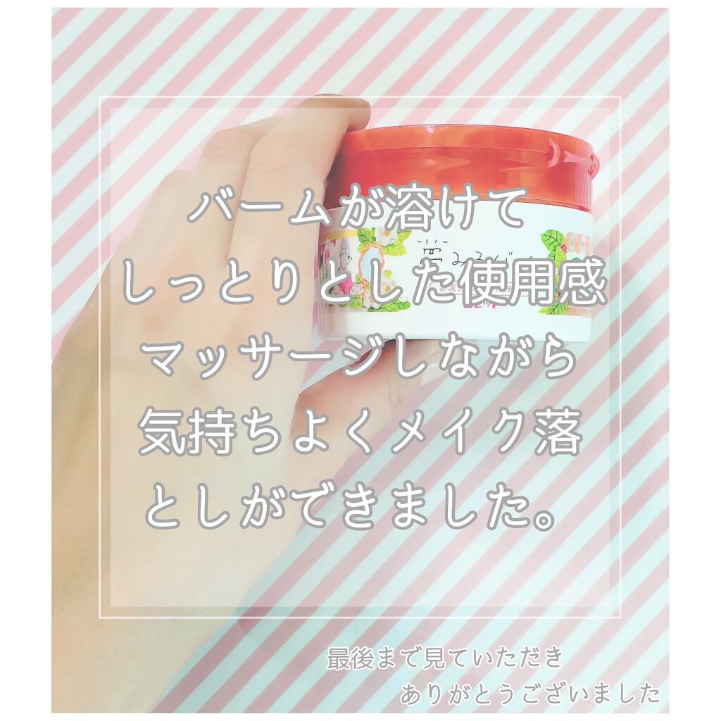 | バームが取ってみるとじんわりととろけてきて、なめらかなテクスチャーに!馴染ませやすくて使いやすいです。 | 詳細を見る | ||
