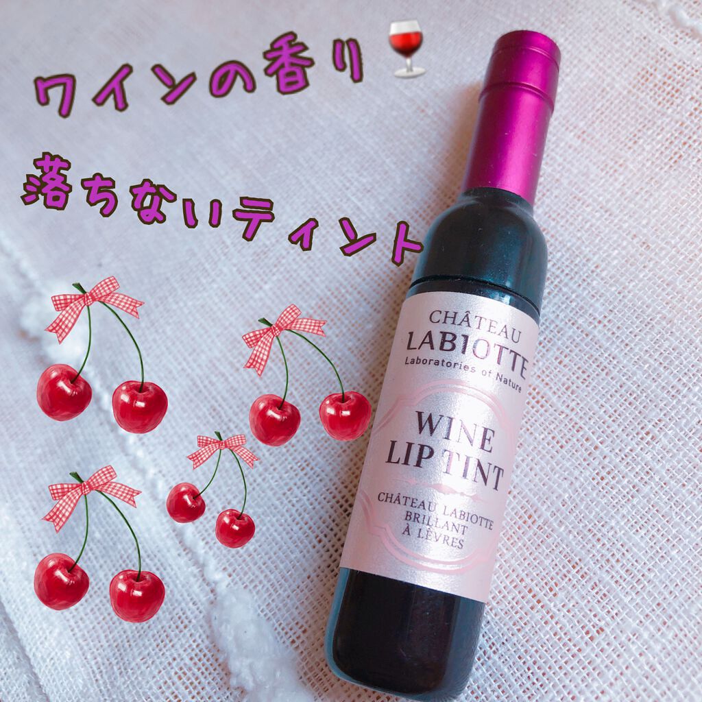 ワインの形をしたティントリップ💄 ワイン好きの私はパケ買いしました 開けると甘~い香りがして、味も甘かったです😂 しっかりティッシュオフしても落ちにくく、あまり荒れません👏