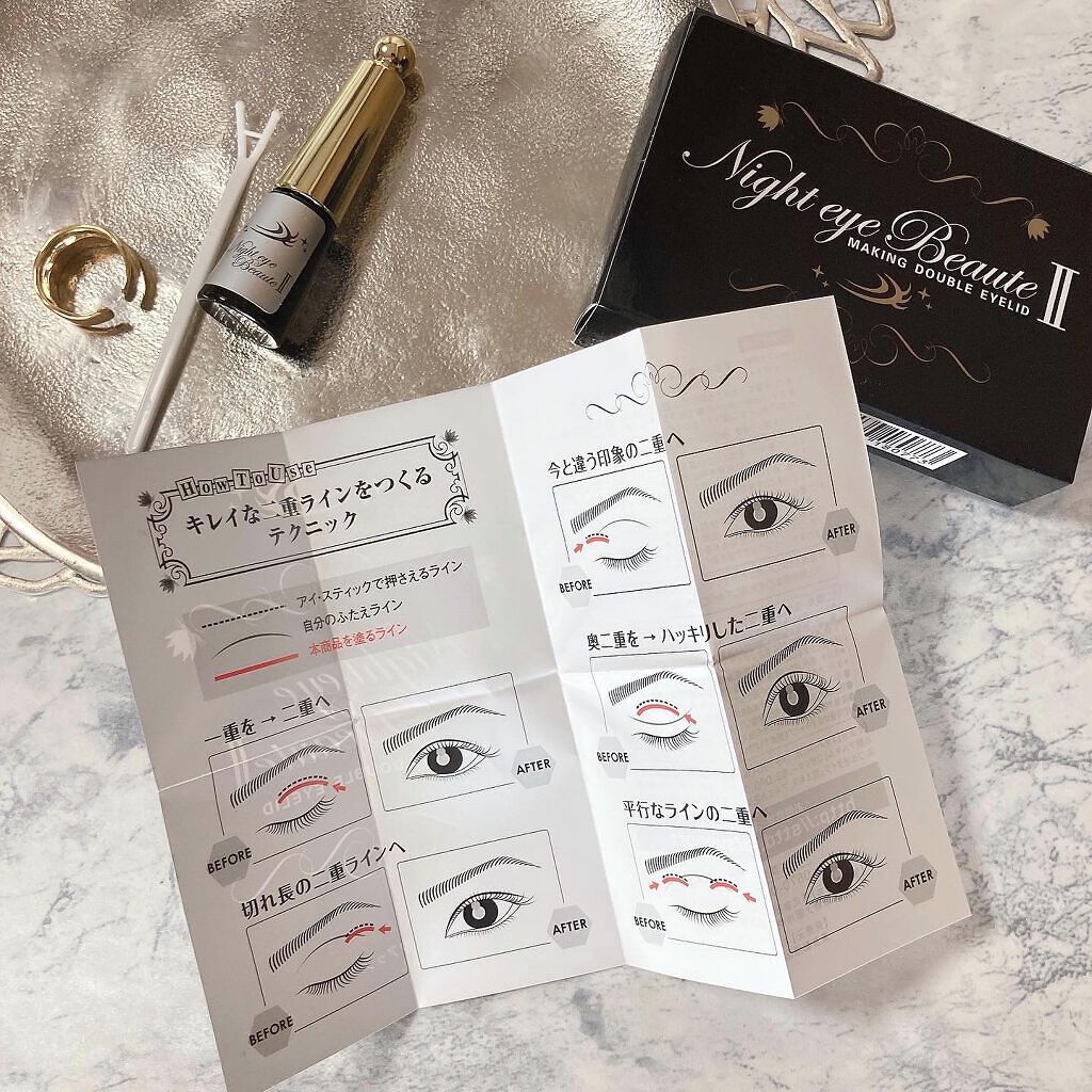 - 寝てる間に二重へ導く、二重クセ付け美容液です。朝まで外れない高い接着力の実現と、まぶたのムクミや荒れ・伸びを予防する、特別調合の美容成分を高配合。