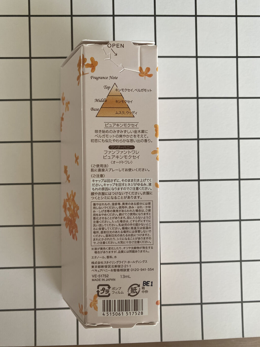 | 時間が経つにつれて匂いが 大人っぽくて華やかな匂い→キンモクセイの純粋な甘い匂い→大人っぽい甘い匂い みたいな感じで変わっていきます😁 | 詳細を見る | |