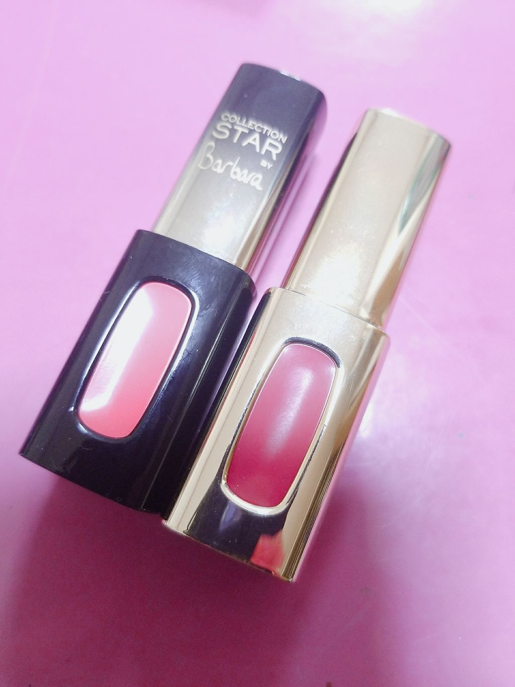 'ロレアルパリカラーリッシュエクストラルージュP602PINKGOLDロレアルのラッキーパック?に入ってたリップ絶対自分では選ばへん女の子らしいピンクやけど色馴染み良くてピンクのラメラメが入ってて最高に可愛い💕女の子らしい格好するときとか絶対...
