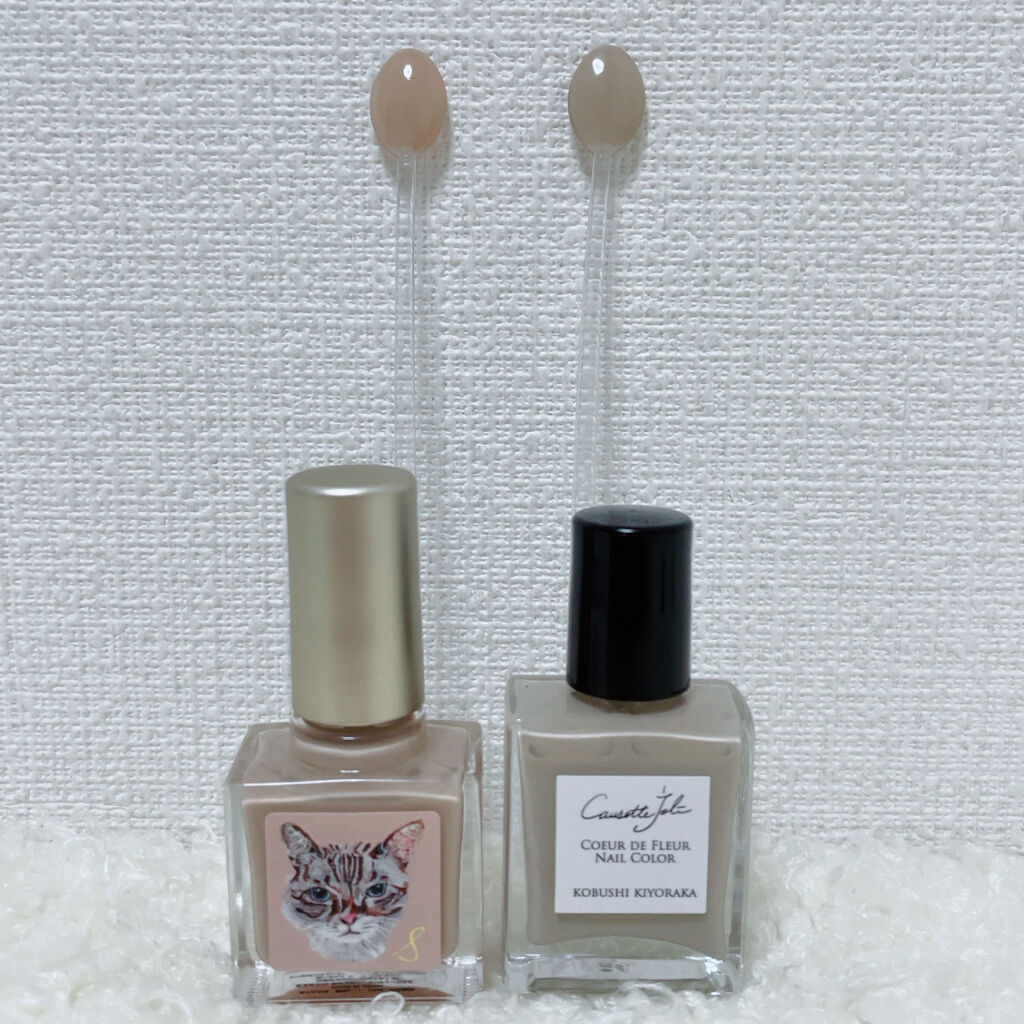 OSAJI『蜜』を2度塗り とにかく塗りやすい✨ 特に2度塗りだとムラなく綺麗に塗れます! 1度塗りの方が肌なじみは良い気がしました。 ブルベの方にも使いやすいブラウンだと思います🙌🏻 細かいラメがたくさん入っていて美しい❣️ 透明のベースにホログラムざくざく🌟 濃いめのカラーに乗せるとホロが目立ってかわいい🙆♀️ ホロが筆につきにくくてもうちょっとたくさん入ってればなぁと思ったので悩んでマイナス1。 でもかわいいので次は別の違う筆を使ってもっとぎっしり乗せてみたいと思います😙