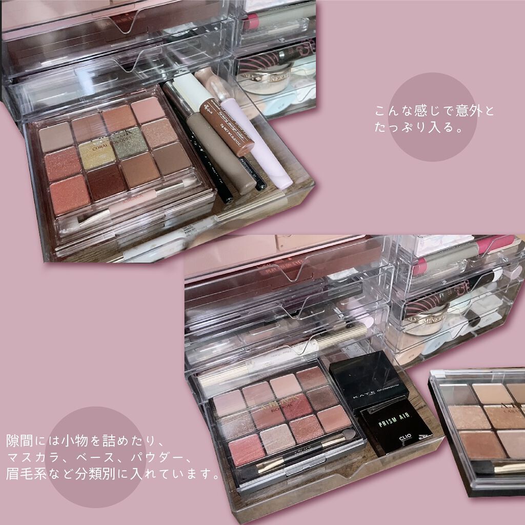 確か3段ケースだけ¥200だったと思います! 積み重ね収納ボックスが1番たくさん持ってるけど、角が丸くなってるので、もの入れにくい気もする… 3段ケースとLakaのリップが入ってるケースはもう買ってから6~7年経つと思います。 中身はちょいちょい変わってますが、長持ちしてくれています! どれもDAISOで買えます❕ 学生さんにおすすめです!!