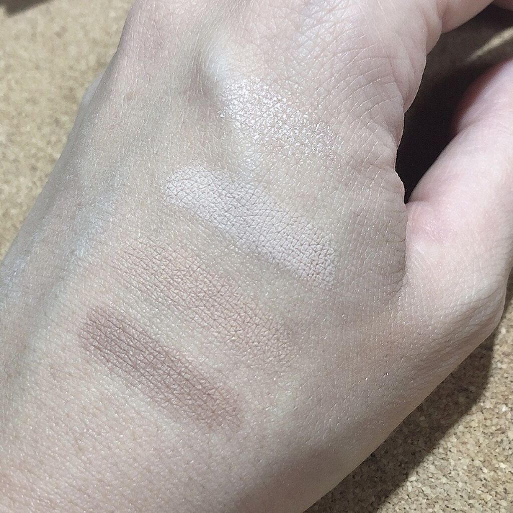 青み紫リキッドシャドウ。 青系統パレット。 苦手色は堂々と瞼中央配置しました。 涙袋はリンメル右上、今回メインの色で影付けて、左上でハイライトとする。 紫を強めるのに一役。 ダークチェスナット 青み系リップ一本有れば汎用性有るわぁ。